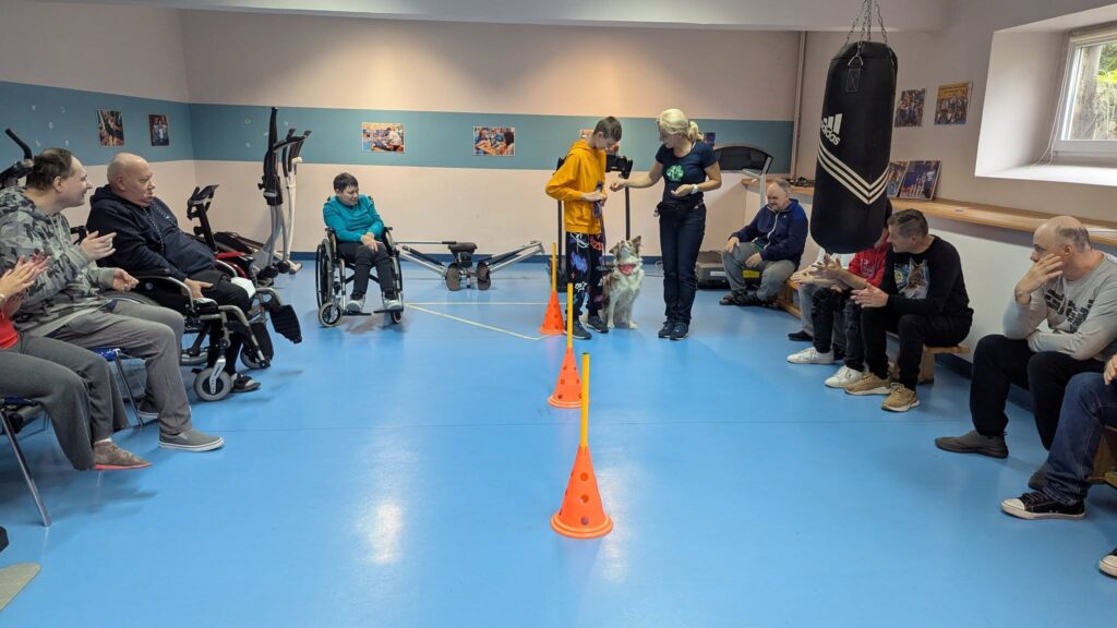 👋 Ogromna radość ogarnęła naszych uczestników, gdy dowiedzieli się, że dziś czeka ich wyjątkowe spotkanie — #Dogoterapia z Panią Katarzyną i ukochaną Larą!