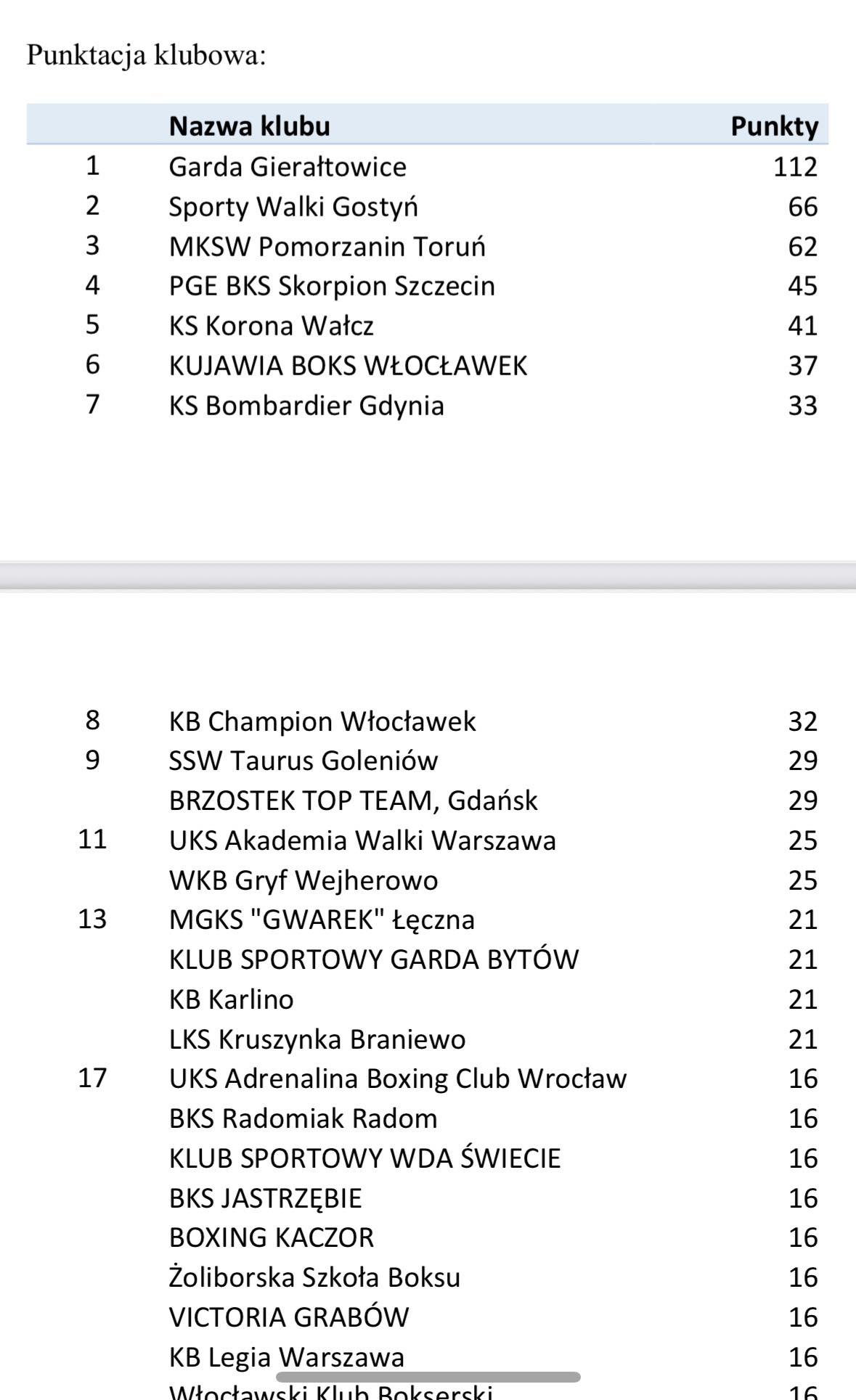 🏅 Wyniki zawodniczek i zawodników Gardy Gierałtowice: