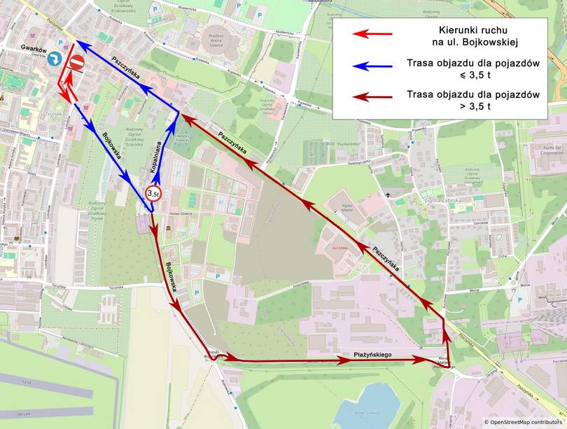 Początkowy odcinek ul. Bojkowskiej – od ul. Pszczyńskiej do rejonu wjazdu do Zespołu Szkół Budowlano-Ceramicznych – stanie się jednokierunkowy. Oznacza to, że nie będzie możliwości dojazdu do ul. Pszczyńskiej od strony Bojkowskiej. Zmiana ta związana jest z budową dodatkowego pasa skrętu, który w przyszłości ma ułatwić dojazd do sklepu Aldi od ul. Bojkowskiej.