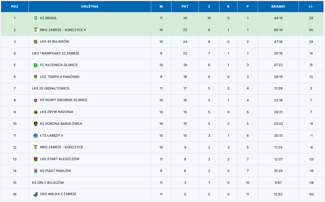 • Tempo II Paniówki – Walka II Zabrze 4:0 (3:0)