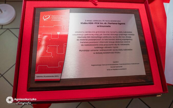 Jednym z najważniejszych momentów uroczystości było wyróżnienie prezesa Klubu HDK PCK w Knurowie, Stanisława Bogumiła, który z rąk przedstawiciela Zarządu Głównego HDK odebrał odznaczenie przyznane najbardziej zasłużonemu i najdłużej działającemu członkowi klubu – z imponującym, 63-letnim stażem honorowego krwiodawcy.