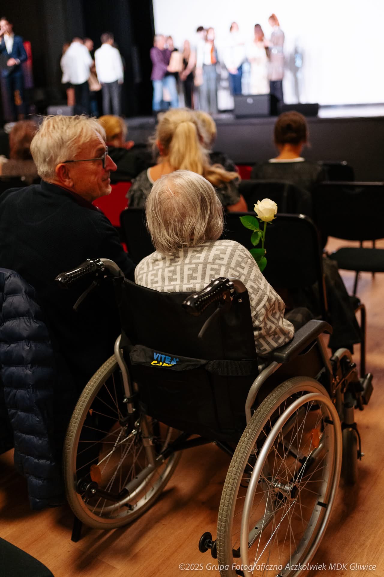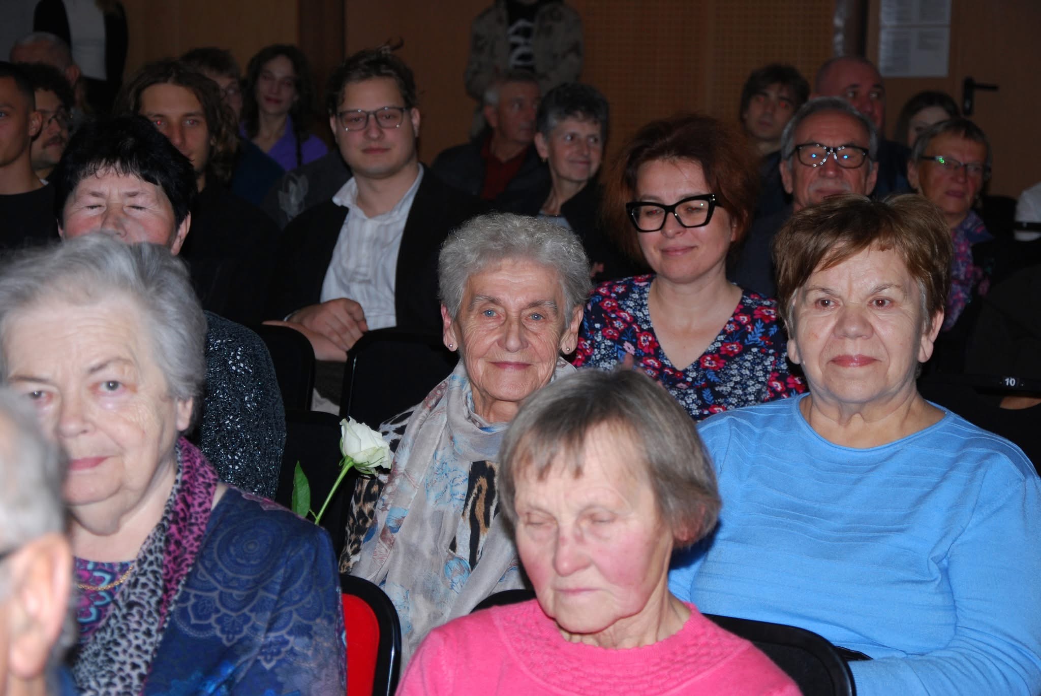 🎁 W imieniu Fundacji na scenie wystąpiła pani Zofia Augustyńska Martyniak, związana rodzinnie z Zofią Rydet, która wyraziła swoje wzruszenie i uznanie dla projektu. Dziękując młodzieży, wręczyła upominki przygotowane dla młodych artystów, w tym zdjęcia autorstwa jej znanej cioci.