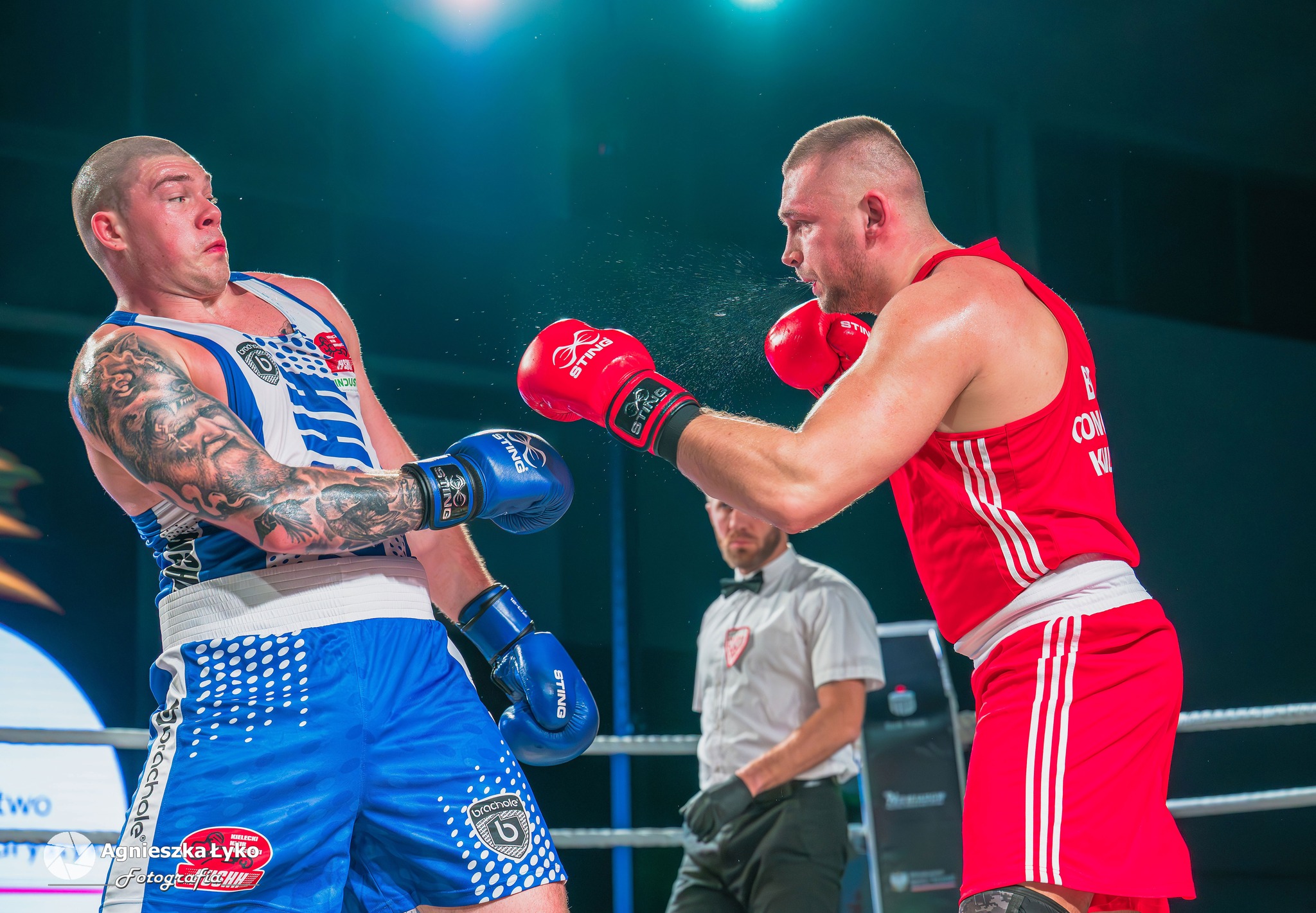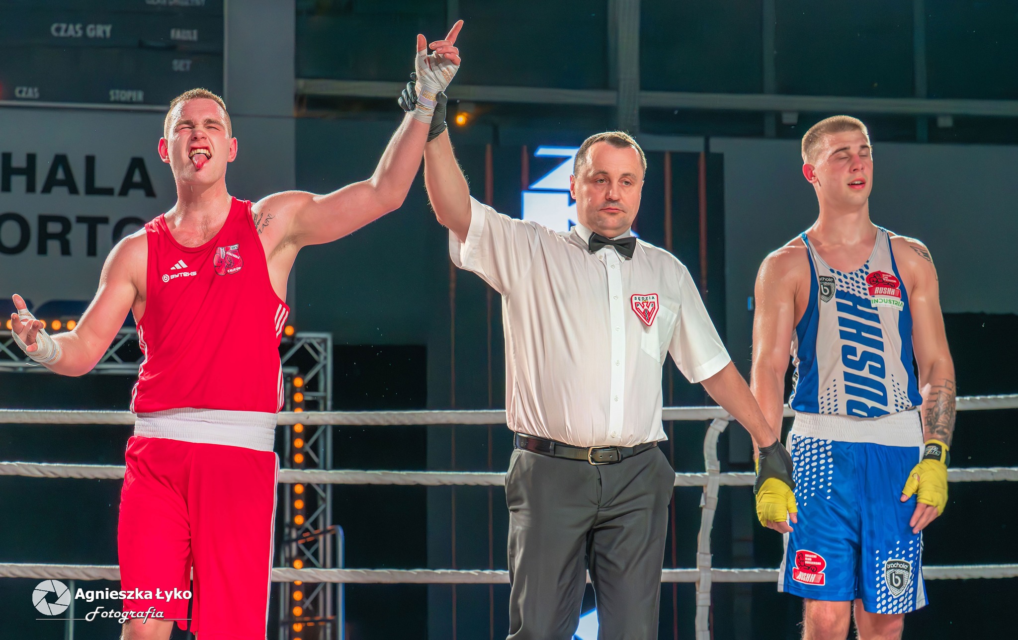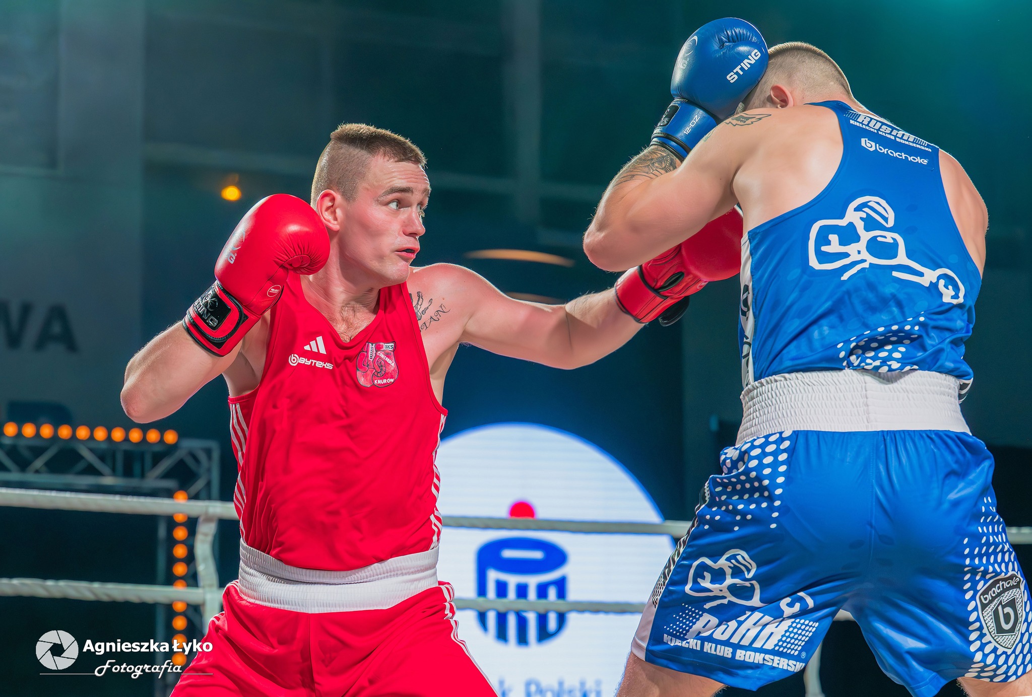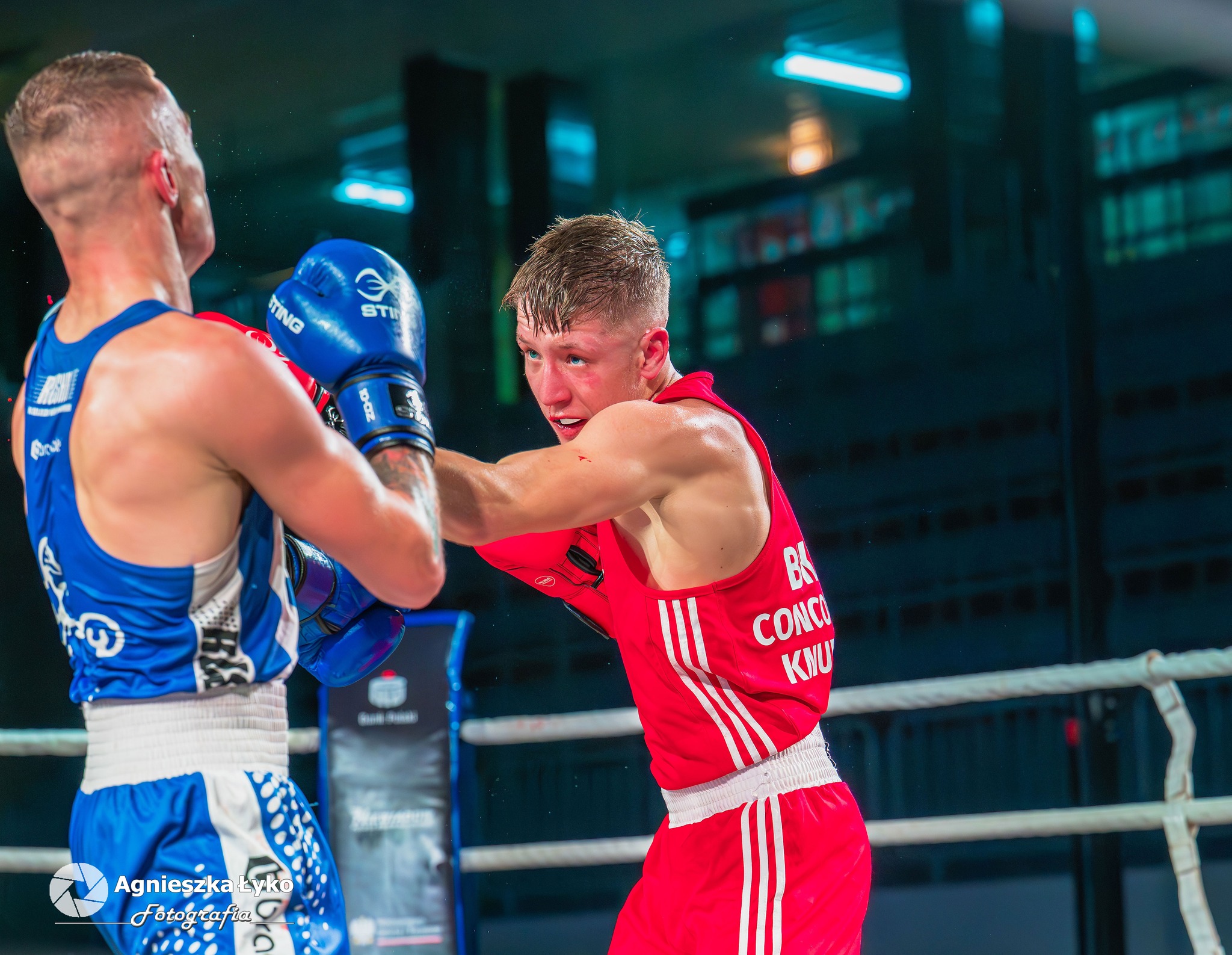 W pierwszej walce (55 kg) Kacper Słomka pokazał się z bardzo dobrej strony. Przez dwie rundy był zdecydowanie lepszy od Mateusza Szczoczarza, a mimo lekkiej przewagi rywala w trzeciej odsłonie, sędziowie jednogłośnie przyznali zwycięstwo zawodnikowi Concordii. Gospodarze objęli prowadzenie 2:0.