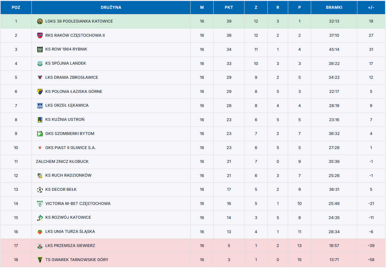 I liga śląska, 16 kolejka: