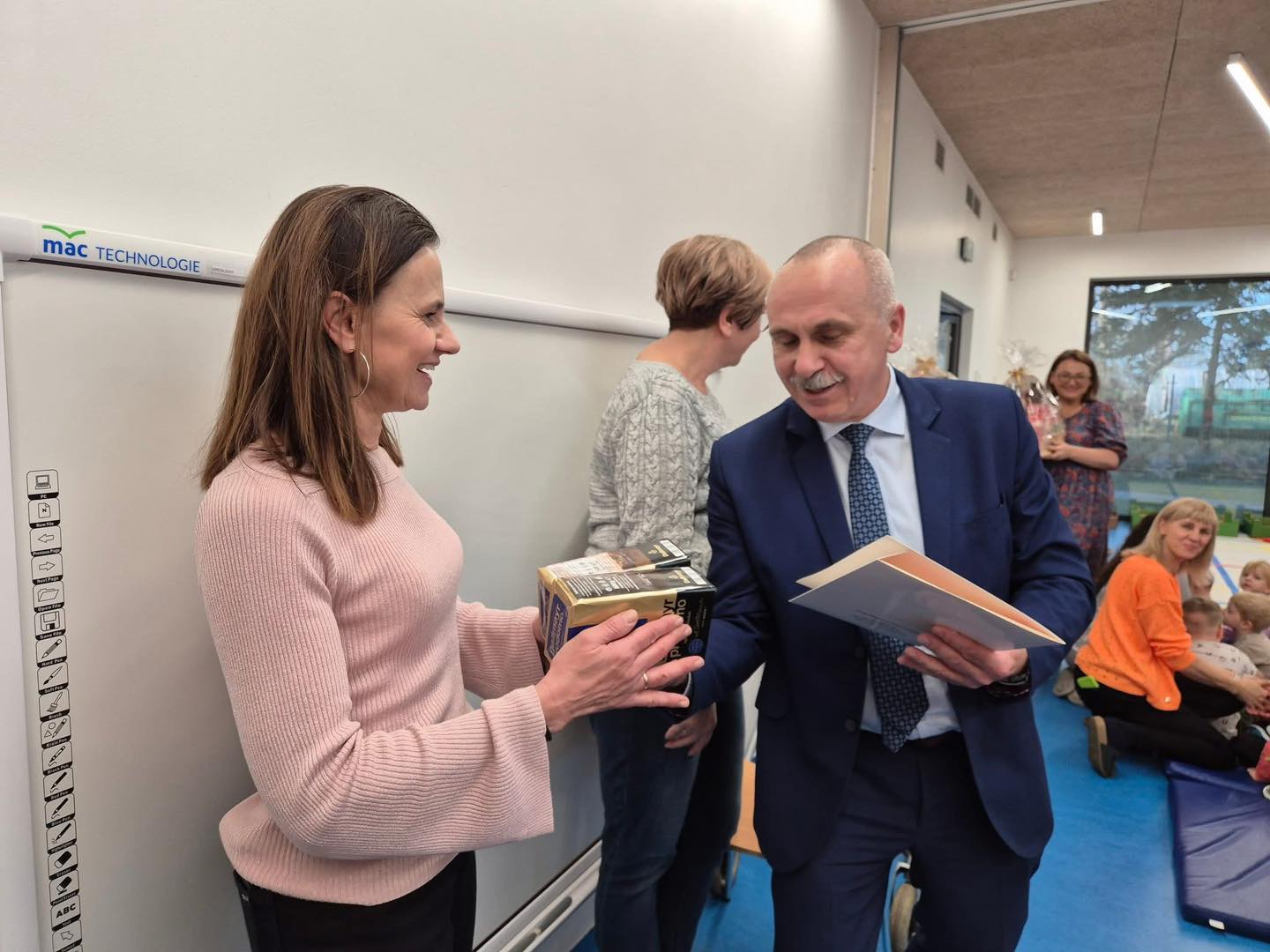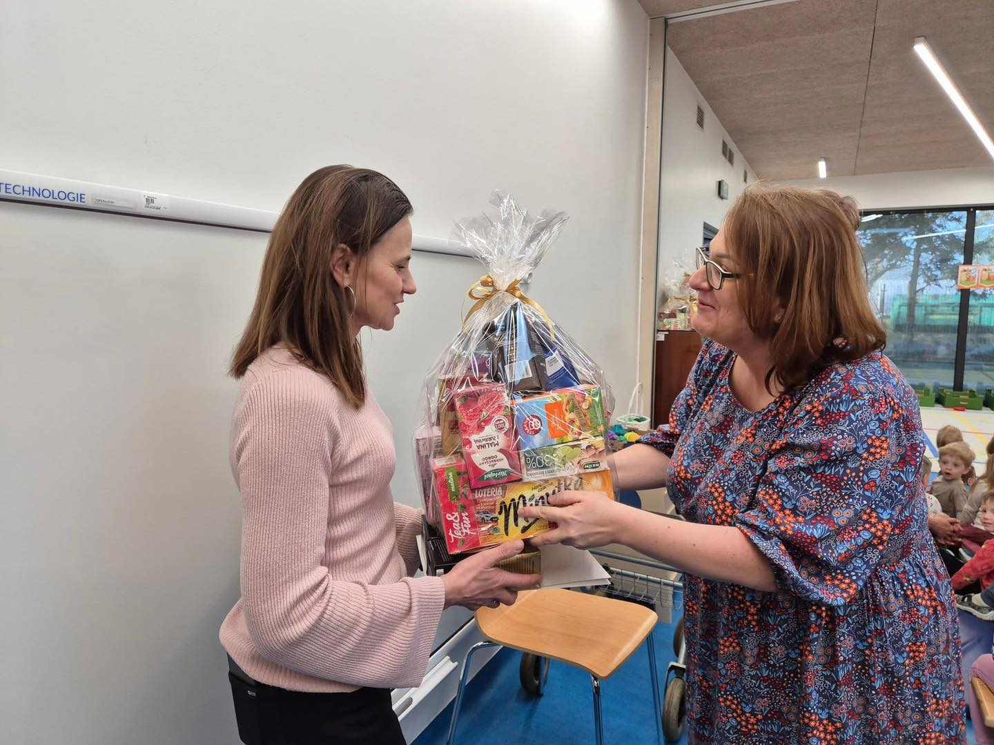 Od rodziców przedszkolaków dyrektor Katarzyna Maks-Król przekazała prezent na ręce kierownik domu „Senior+”, Jolanty Polednik.