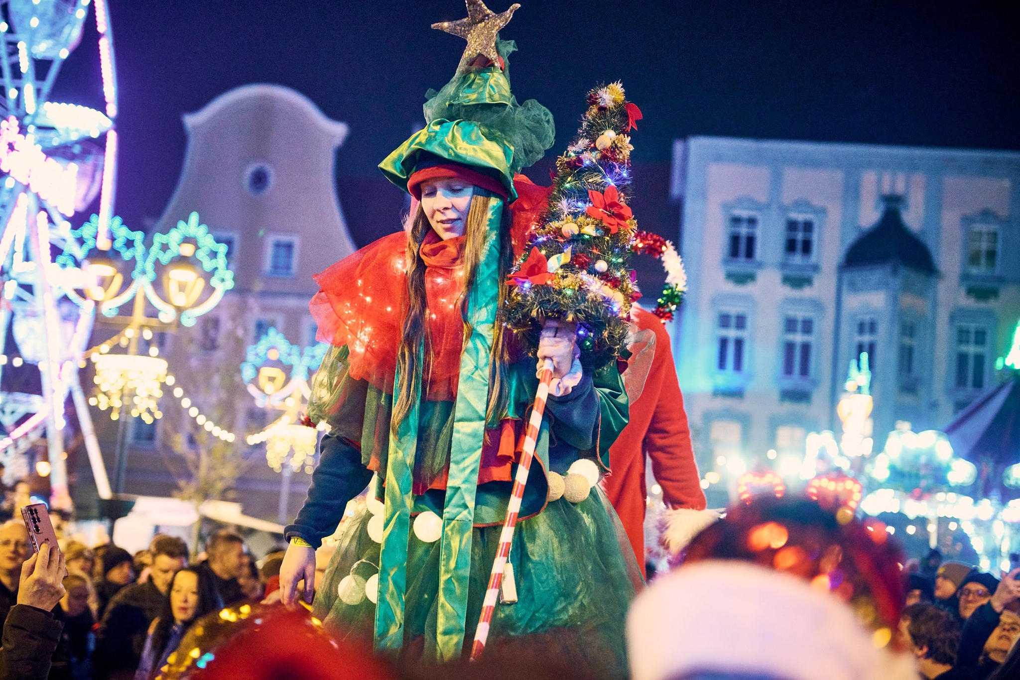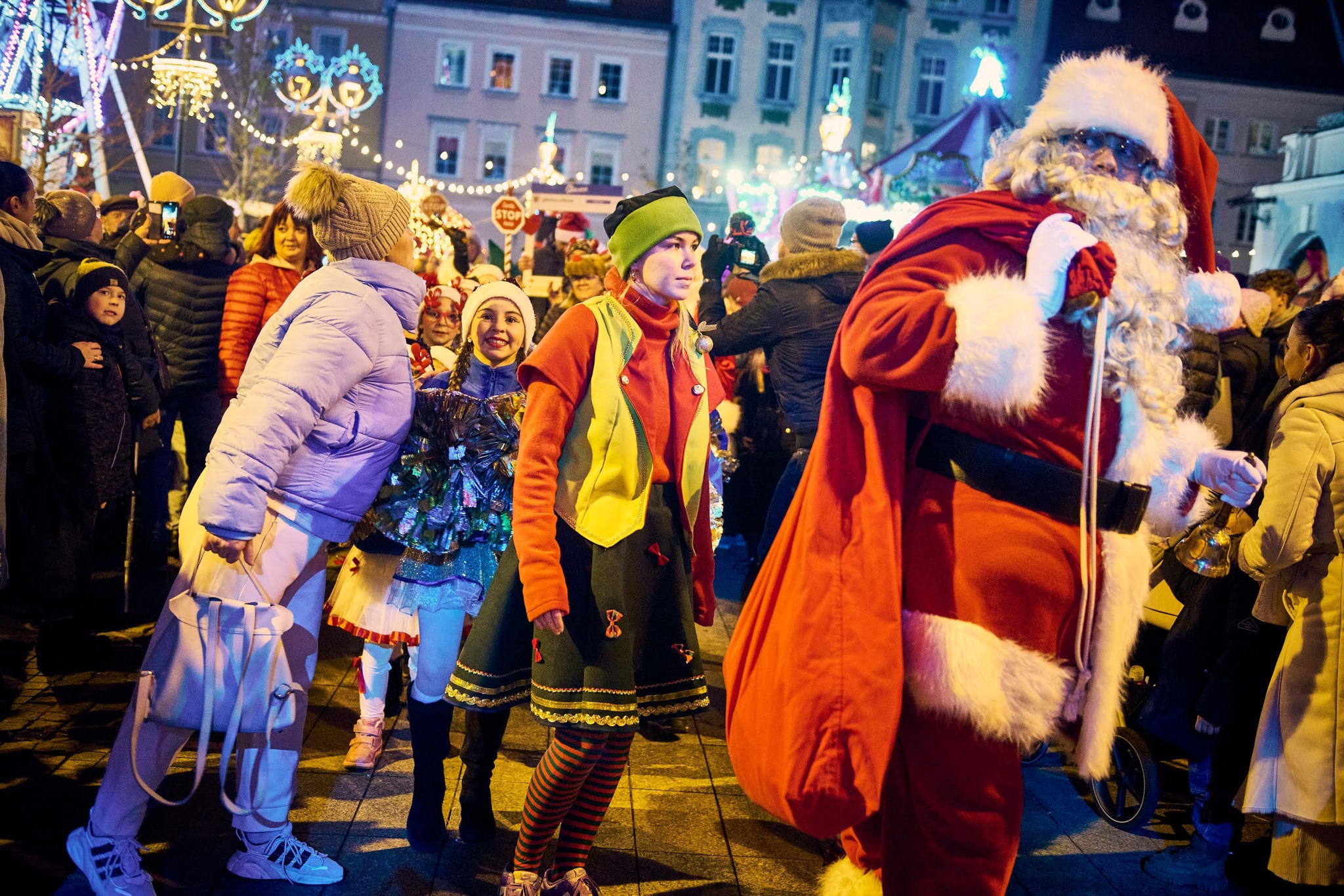 Pośród barwnych straganów przechadzały się wesołe elfy, a rynek rozbrzmiewał świąteczną muzyką i radosnym gwarem rodzin. Wspólna zabawa, błysk choinkowych świateł i zapach jarmarkowych smakołyków sprawiły, że odwiedzający mogli poczuć magię zbliżających się świąt.