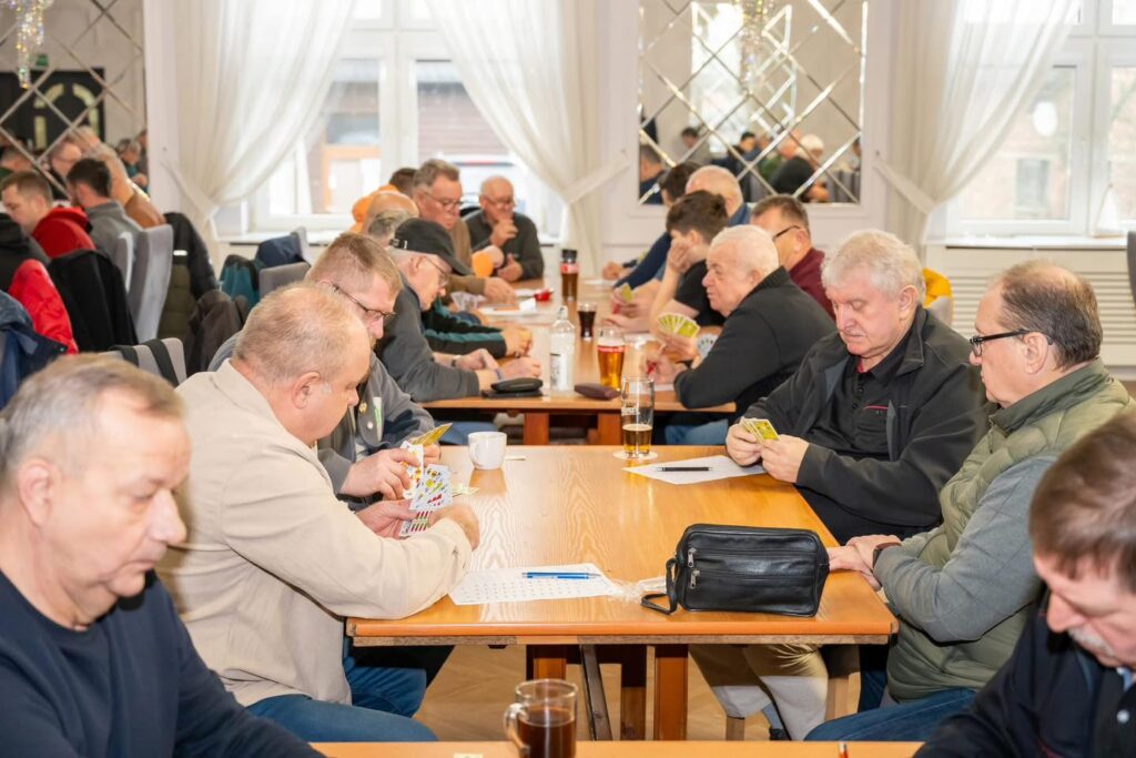 📅 21 grudnia 2025 r. w restauracji „U Marije” w Przyszowicach odbył się Turniej Skata o Puchar Wójta Gminy Gierałtowice. W wydarzeniu wzięło udział 68 uczestników z różnych regionów: województwa opolskiego, powiatu tyskiego, wodzisławskiego, katowickiego oraz okręgu zabrskiego.