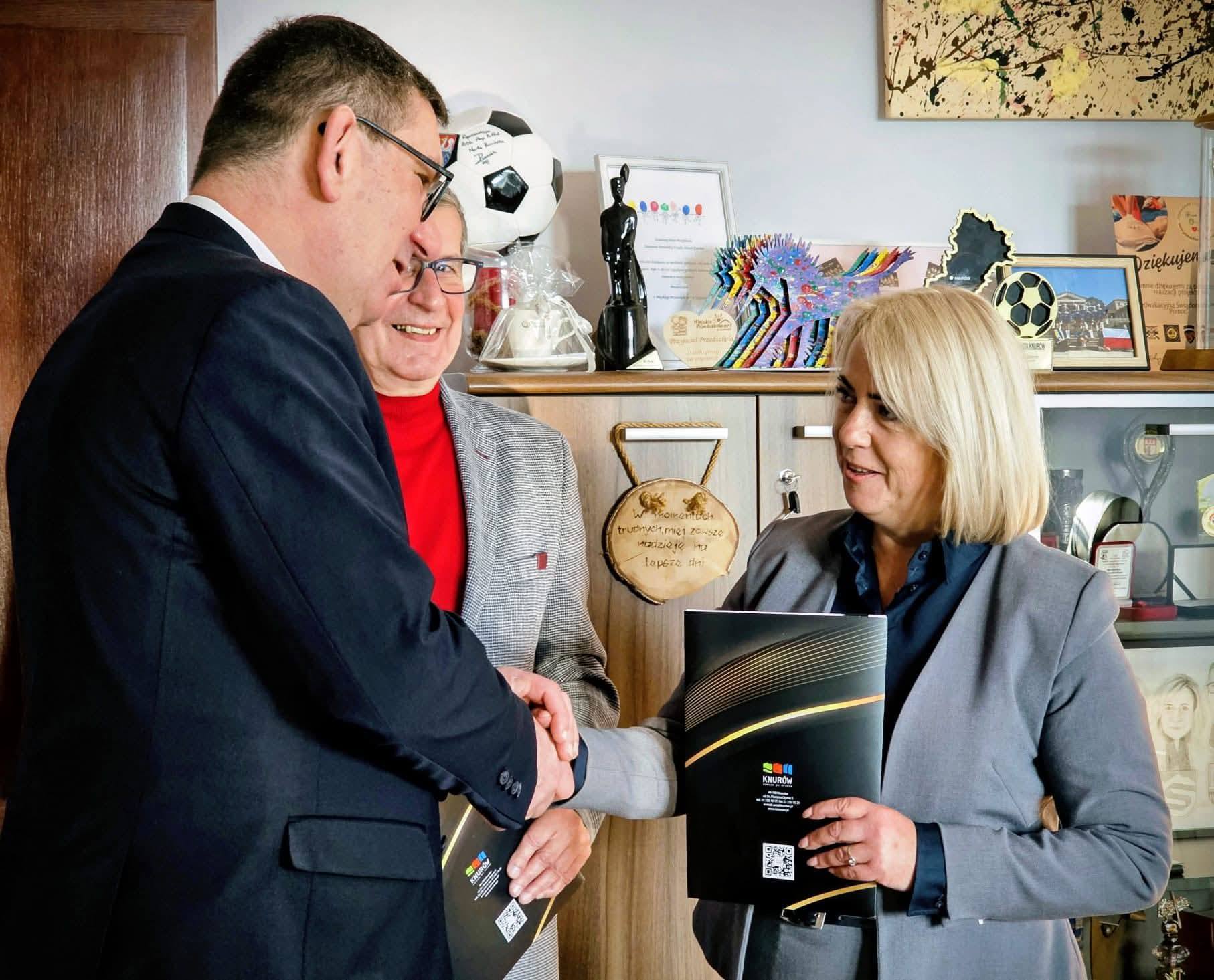 Przed południem zawarto dwie umowy z wykonawcami. W pierwszym spotkaniu uczestniczyli: Prezydent Miasta Tomasz Rzepa, Zastępca Prezydenta Miasta Knurów Wojciech Kołodziej oraz Naczelnik Wydziału Inwestycji Miejskich i Spraw Drogowych Magdalena Szczygieł. Umowa została podpisana z firmą PRUIM Gliwice, reprezentowaną przez prezes Izabelę Nowak. Zadanie obejmuje rozbudowę ulicy Mieszka I na odcinku od skrzyżowania z ul. Kazimierza Wielkiego do skrzyżowania z ul. Kosmonautów.