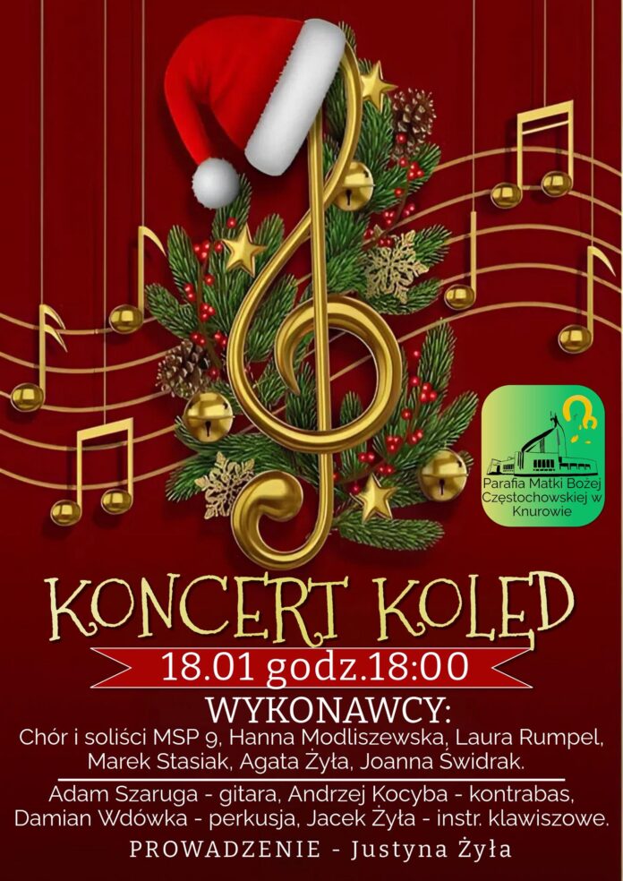 Miłośnicy świątecznej muzyki będą mieli okazję przedłużyć bożonarodzeniowy klimat podczas Koncertu Kolęd, który odbędzie się 18 stycznia o godz. 18.00 w Parafii Matki Bożej Częstochowskiej w Knurowie.