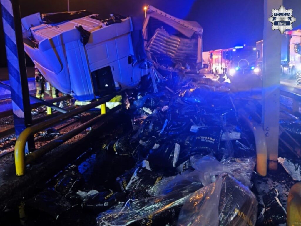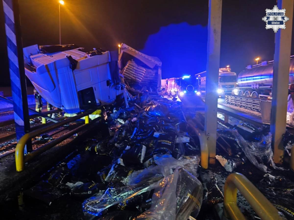 Około północy na autostradzie A4 na bramkach punktu poboru opłat w Żernicy, na jezdni w kierunku Katowic, doszło do groźnie wyglądającej kolizji z udziałem samochodu ciężarowego.
