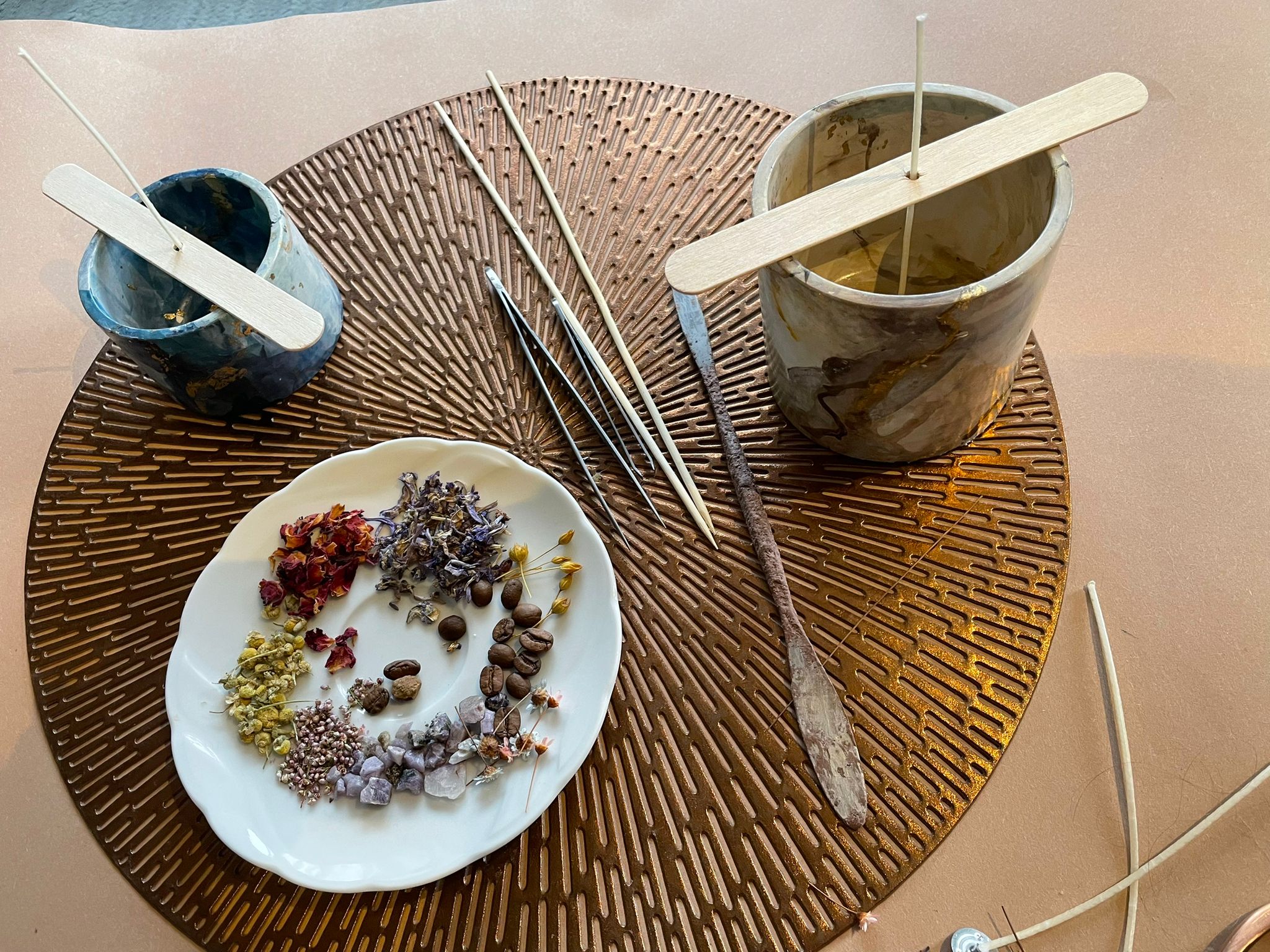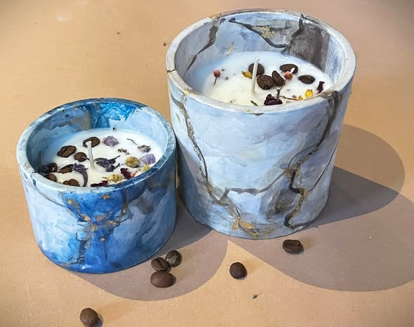 Wypełnimy marmurowe formy woskiem i ozdobimy je m.in. suszonymi kwiatami 🌸 oraz kawą ☕