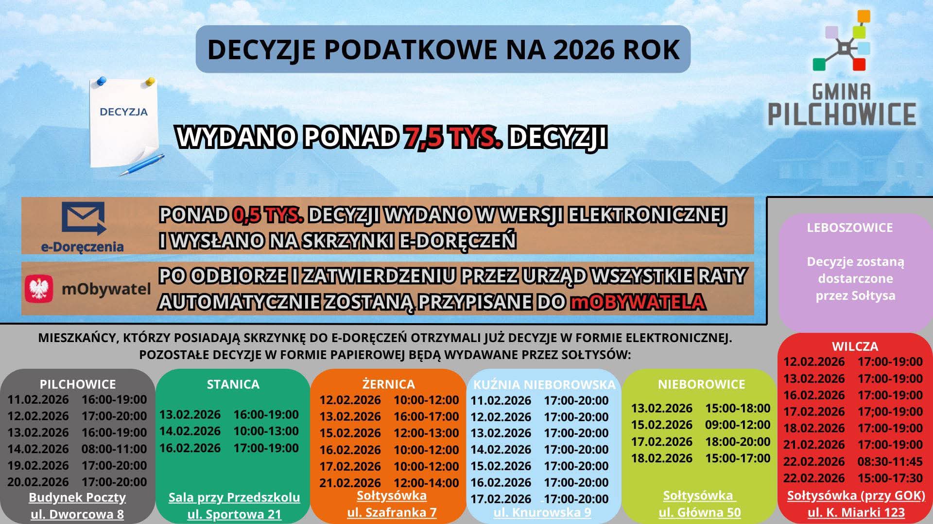 • Leboszowice: Decyzje zostaną dostarczone bezpośrednio przez Sołtysa.