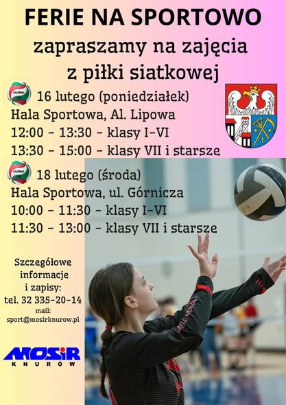 Wraz z rozpoczęciem ferii zimowych w Knurów ruszyła akcja „Ferie Na Sportowo”, przygotowana przez MOSiR Knurów. Program obejmuje różnorodne formy aktywności fizycznej i rekreacji, skierowane do dzieci i młodzieży spędzających zimowy wypoczynek na miejscu.