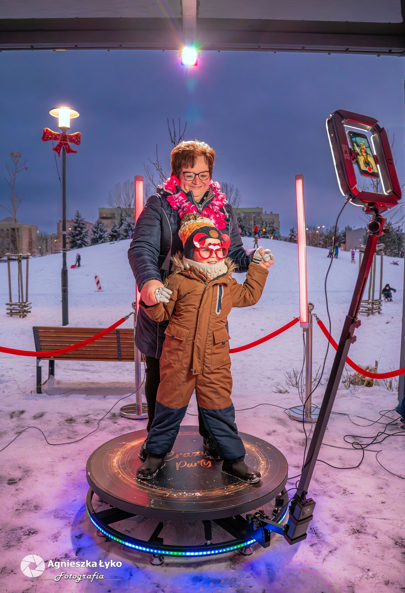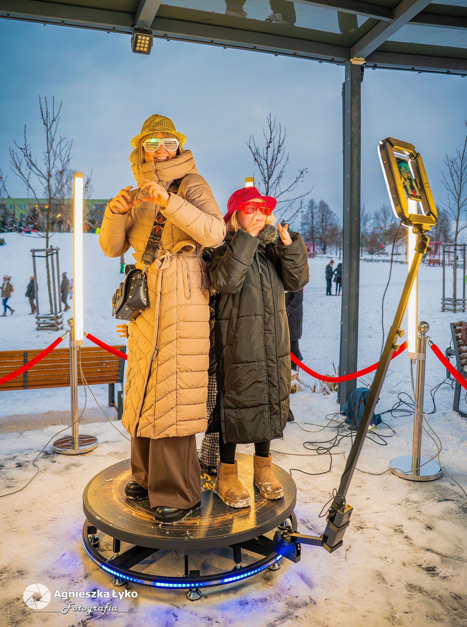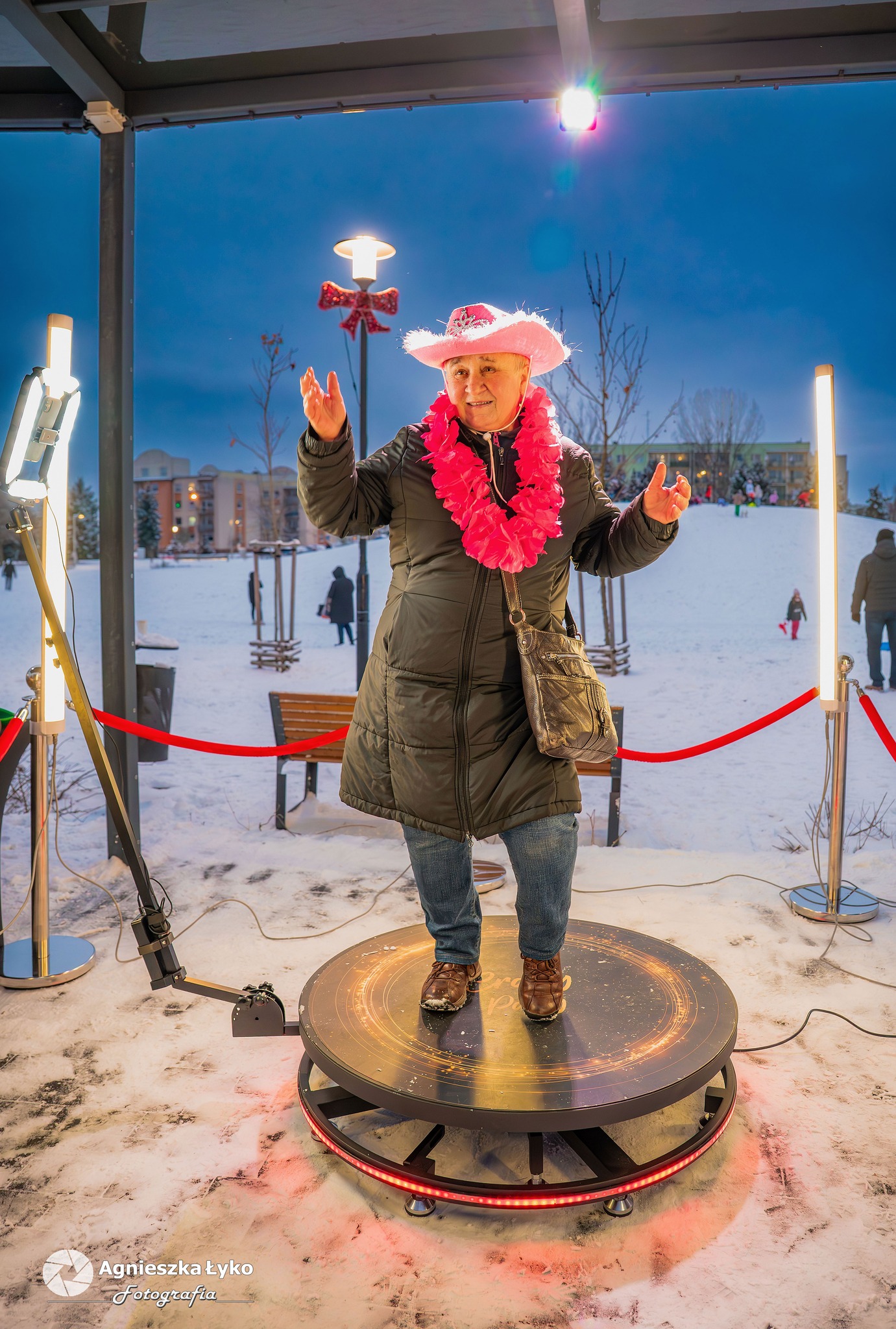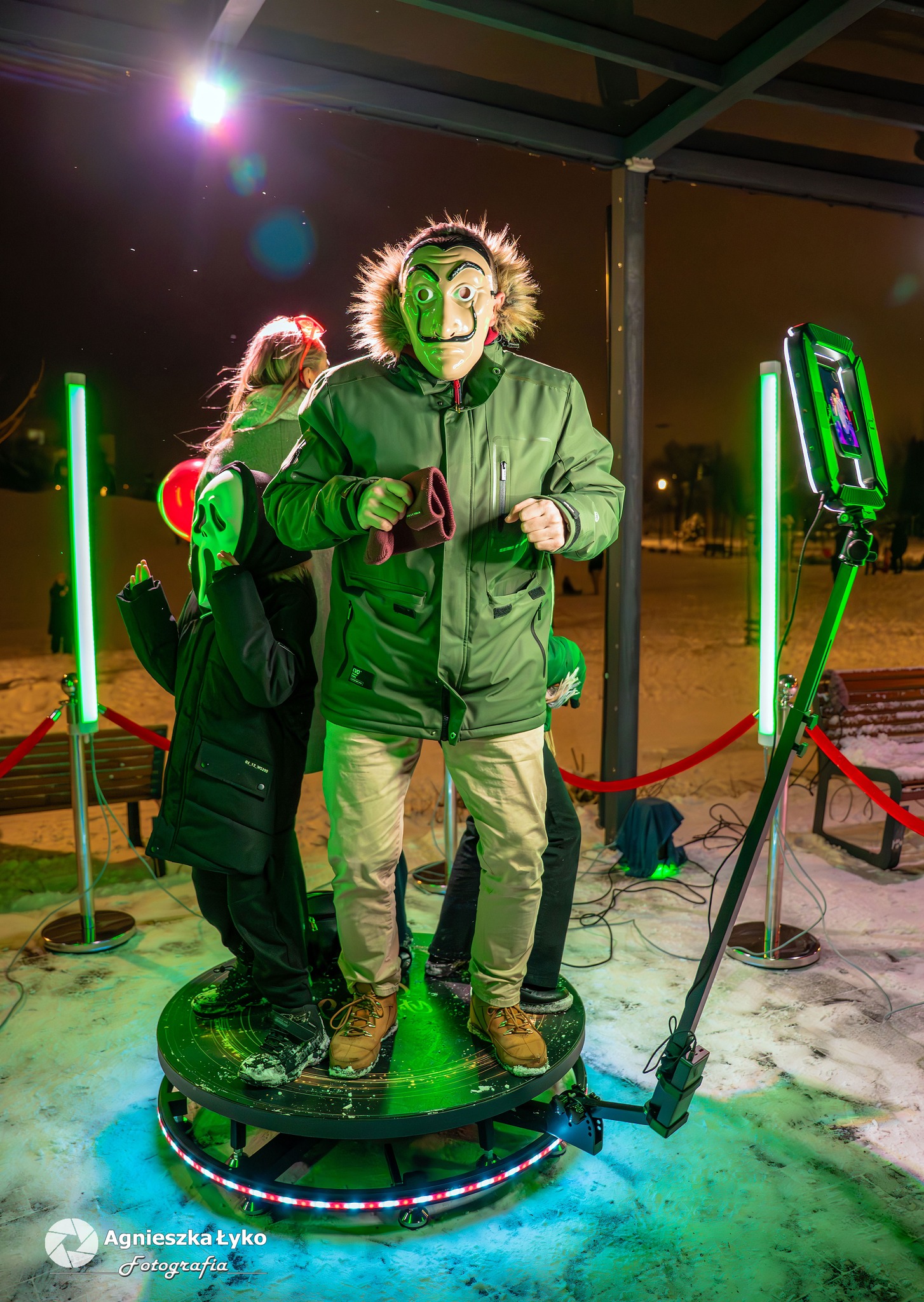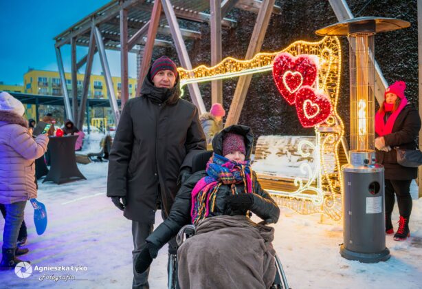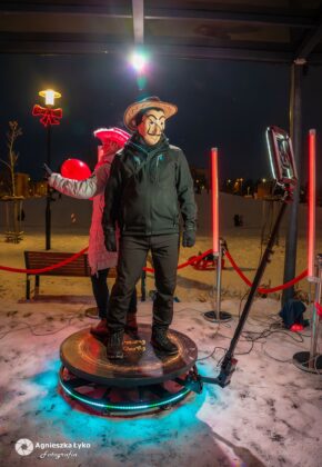 Dla fanów nowoczesnych technologii przygotowano fotobudkę 360 stopni, która pozwalała na nagranie dynamicznych filmików w samym centrum zabawy. Uwagę przyciągała także specjalna, migająca ramka walentynkowa. Co ważne dla tych, którzy nie mogli pojawić się 15 lutego- ta efektowna dekoracja świetlna została postawiona przy tężni na dłużej i wciąż można przy niej wykonać pamiątkowe, wieczorne zdjęcie, do czego gorąco zachęcamy!