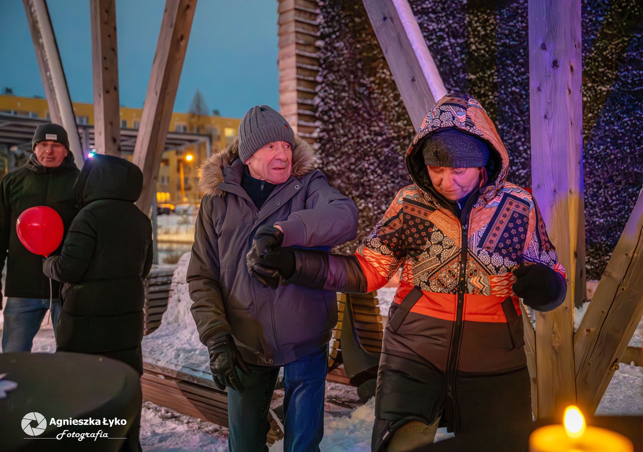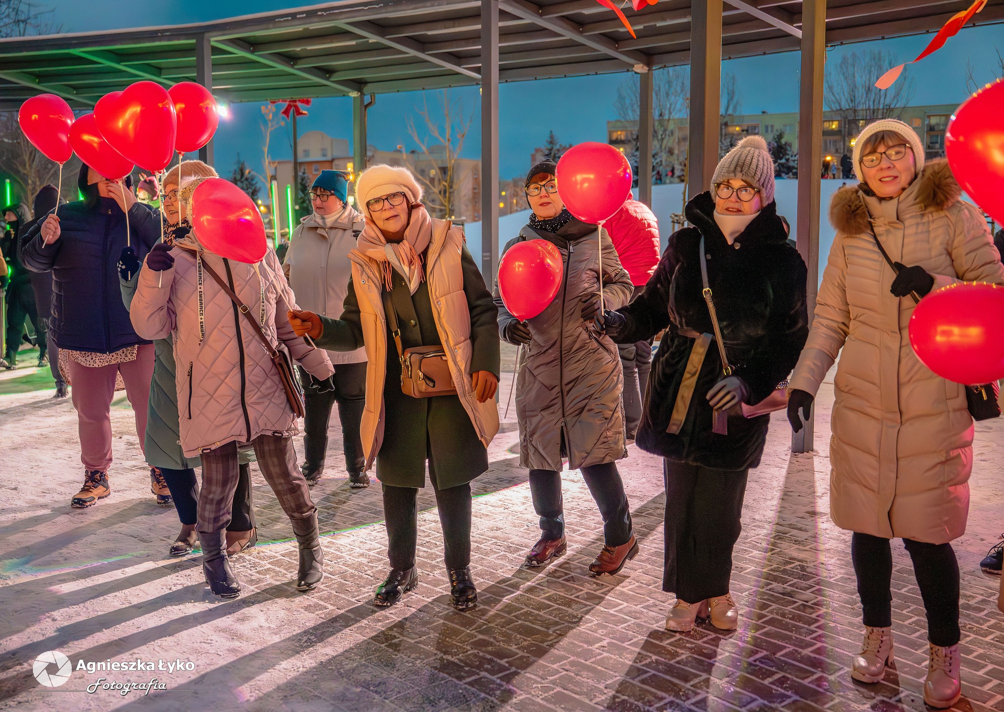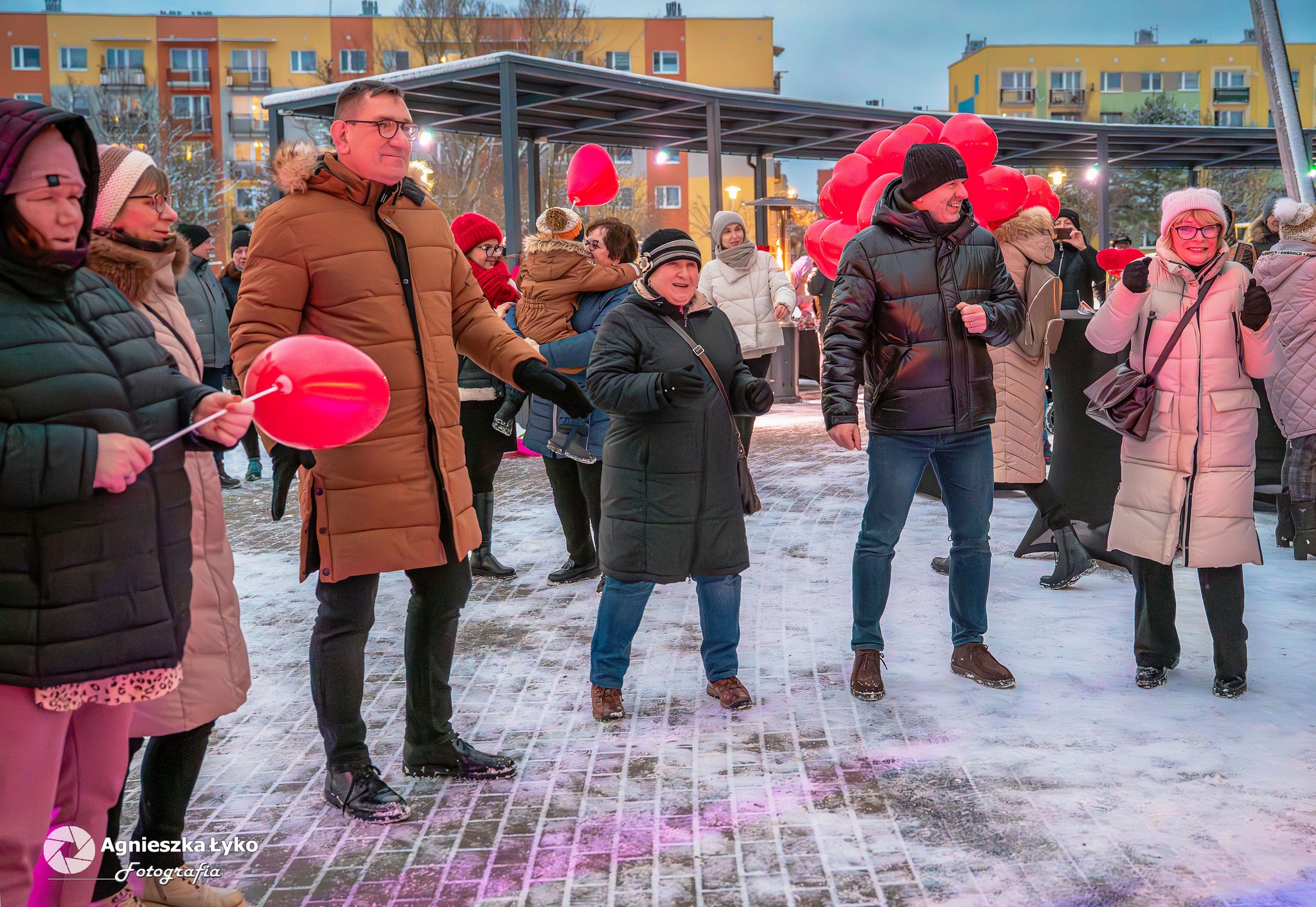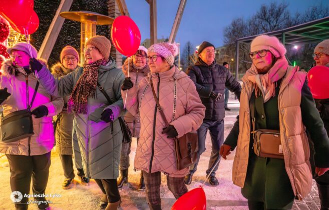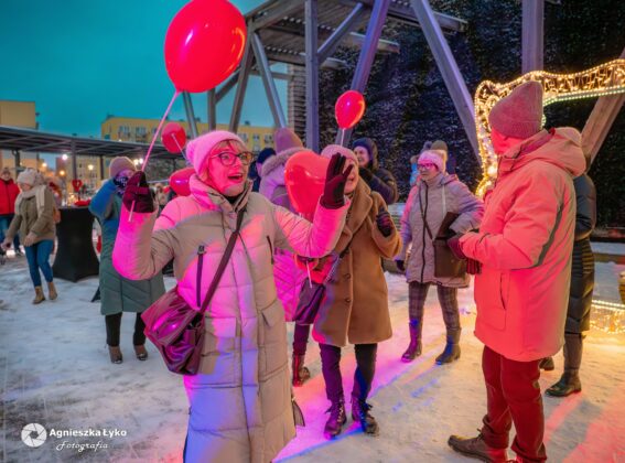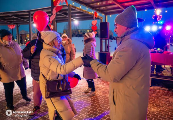 Organizatorzy zadbali o to, by nikt nie odszedł z pustymi rękami. Przedstawiciele Centrum Kultury rozdawali uczestnikom darmowe balony, które momentalnie „pokolorowały” parkową przestrzeń na czerwono. Prawdziwym hitem okazało się także stoisko z darmową, gorącą czekoladą. Gęsty, aromatyczny napój z dodatkiem słodkości nie tylko rozgrzewał dłonie, ale stał się też okazją do miłych rozmów w przerwach między tańcami.
