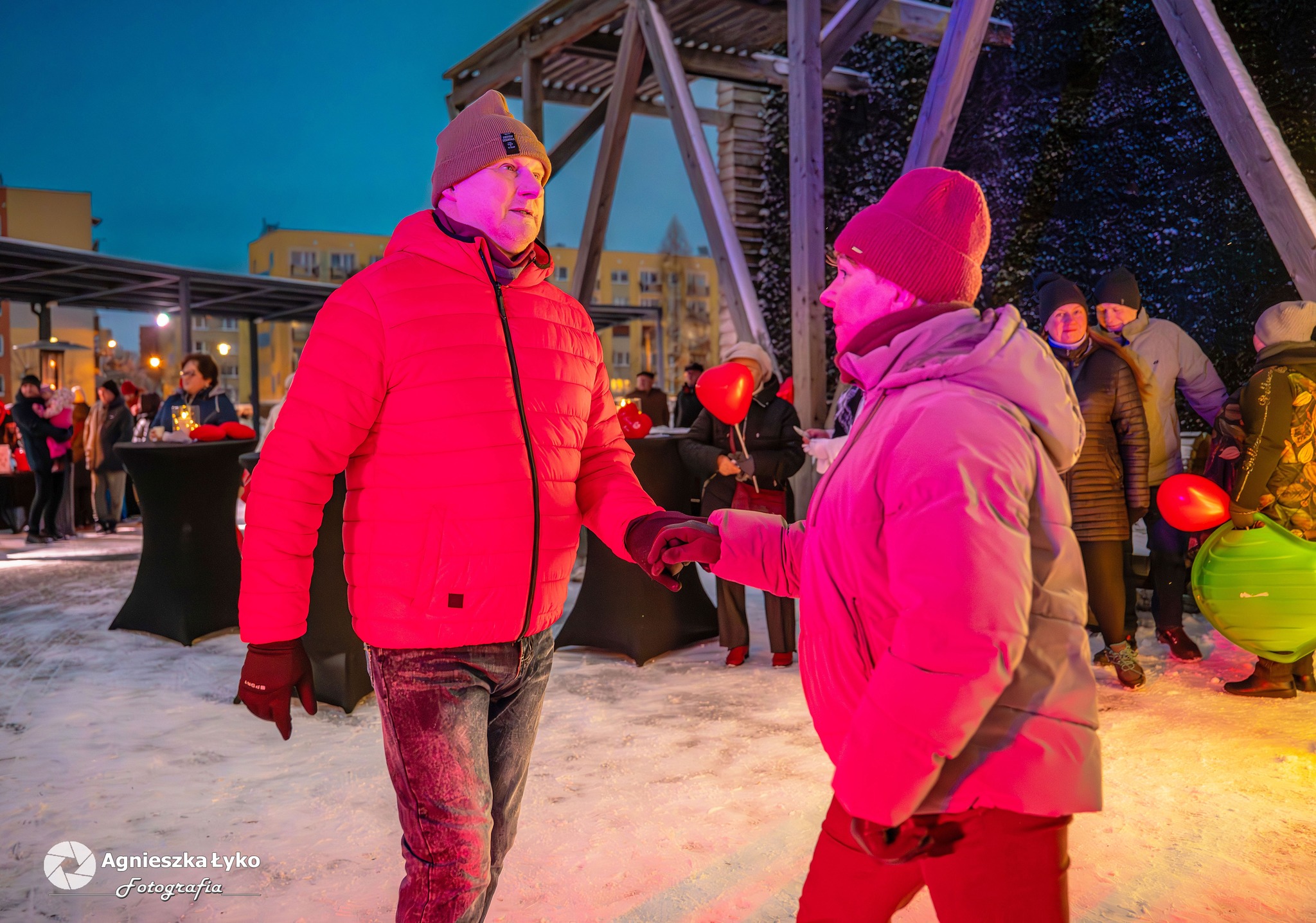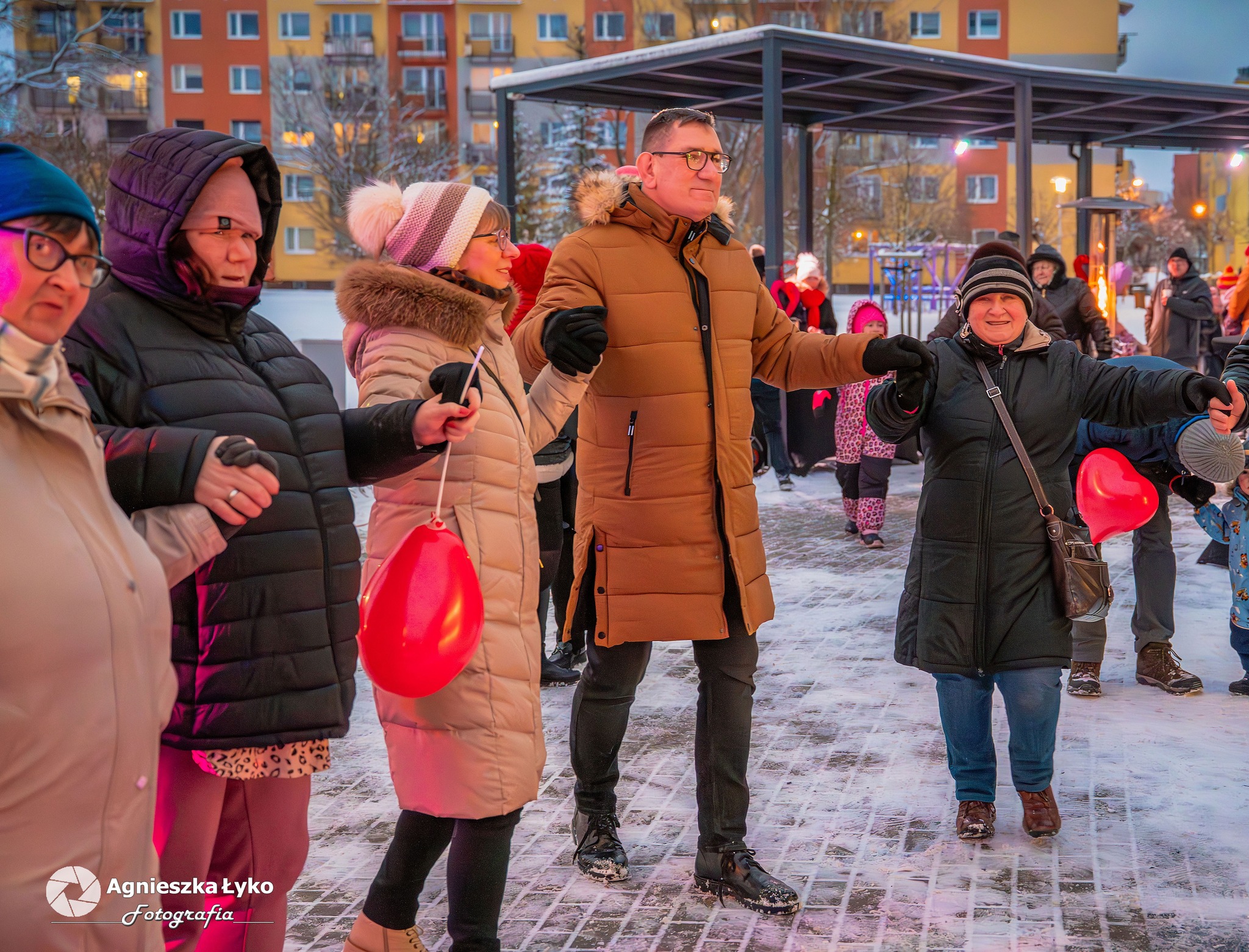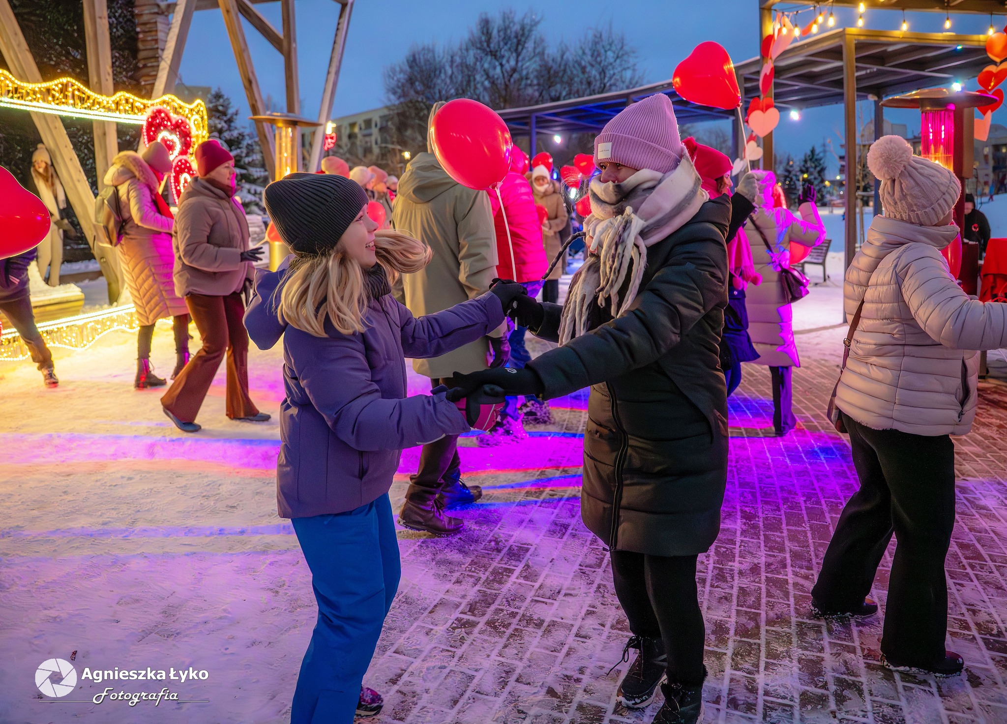 Organizatorzy zadbali o to, by nikt nie odszedł z pustymi rękami. Przedstawiciele Centrum Kultury rozdawali uczestnikom darmowe balony, które momentalnie „pokolorowały” parkową przestrzeń na czerwono. Prawdziwym hitem okazało się także stoisko z darmową, gorącą czekoladą. Gęsty, aromatyczny napój z dodatkiem słodkości nie tylko rozgrzewał dłonie, ale stał się też okazją do miłych rozmów w przerwach między tańcami.