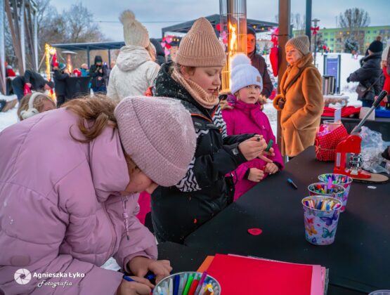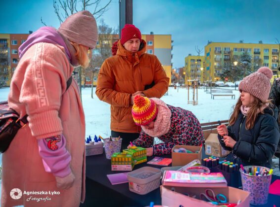 Wielką popularnością, zwłaszcza wśród najmłodszych, cieszyło się stoisko biblioteczne. W ramach warsztatów kreatywnych każdy chętny mógł samodzielnie zaprojektować i wykonać walentynkowe przypinki. Te unikalne, kolorowe buttony z miłosnymi motywami błyskawicznie ozdobiły kurtki i płaszcze uczestników, stając się radosnym symbolem tegorocznego święta.