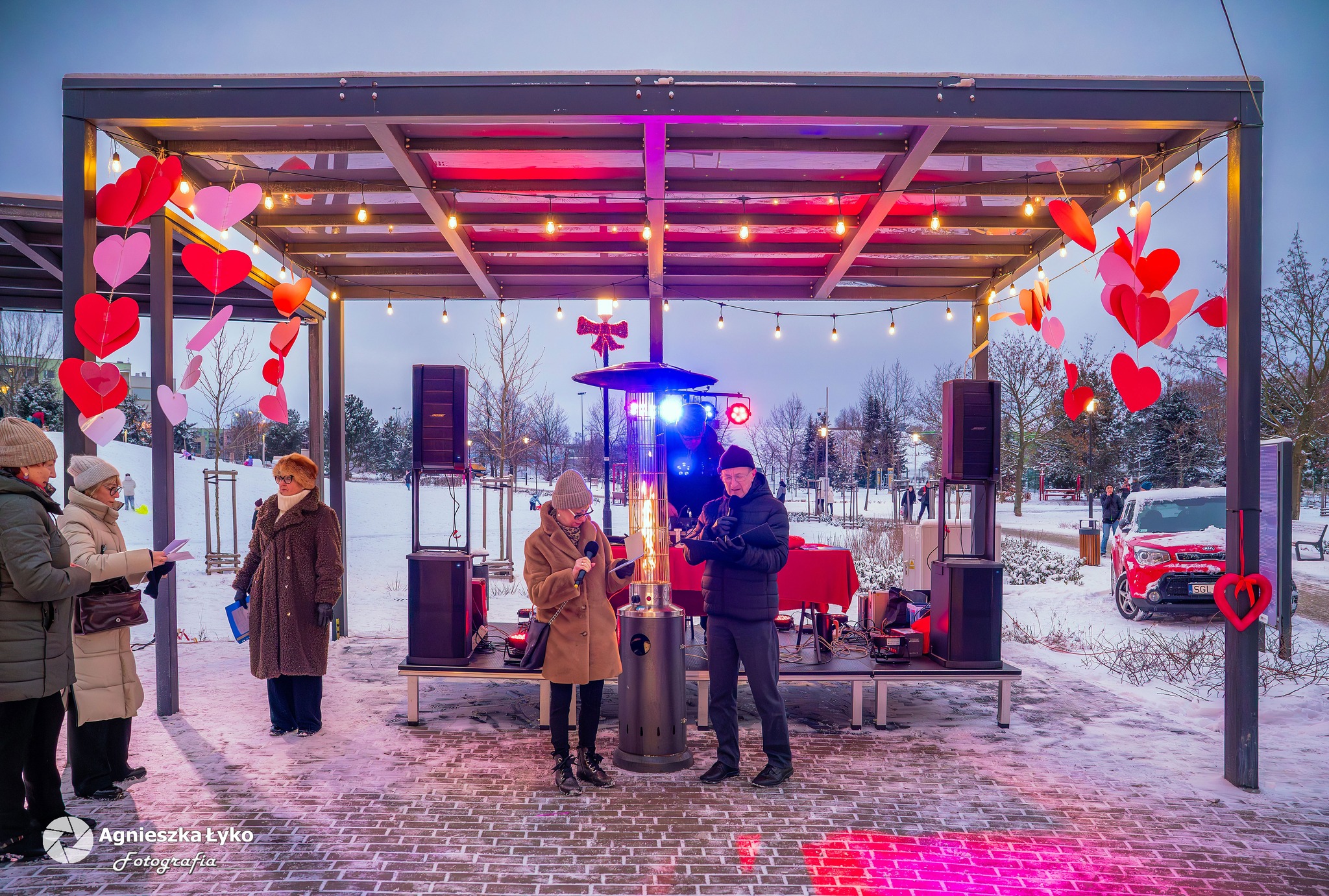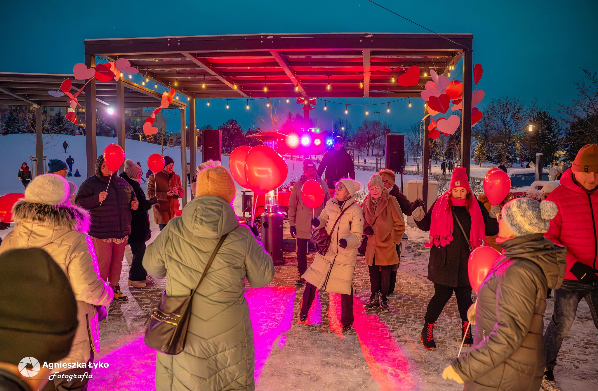 Choć zimowa aura zazwyczaj skłania do zostania w domu, niedzielne popołudnie 15 lutego w Knurowie udowodniło, że mieszkańcy potrafią rozgrzać miasto nawet w środku lutego. Punktualnie o godzinie 17:00 park przy ul. Ułanów, gdzie tężnia solankowa w zimowym anturażu stanowiła malownicze tło, wypełnił się głośną muzyką i radosnym gwarem. Rozpoczęły się „Roztańczone Walentynki pod gwiazdami”, wydarzenie, które połączyło pokolenia w rytmie największych przebojów.