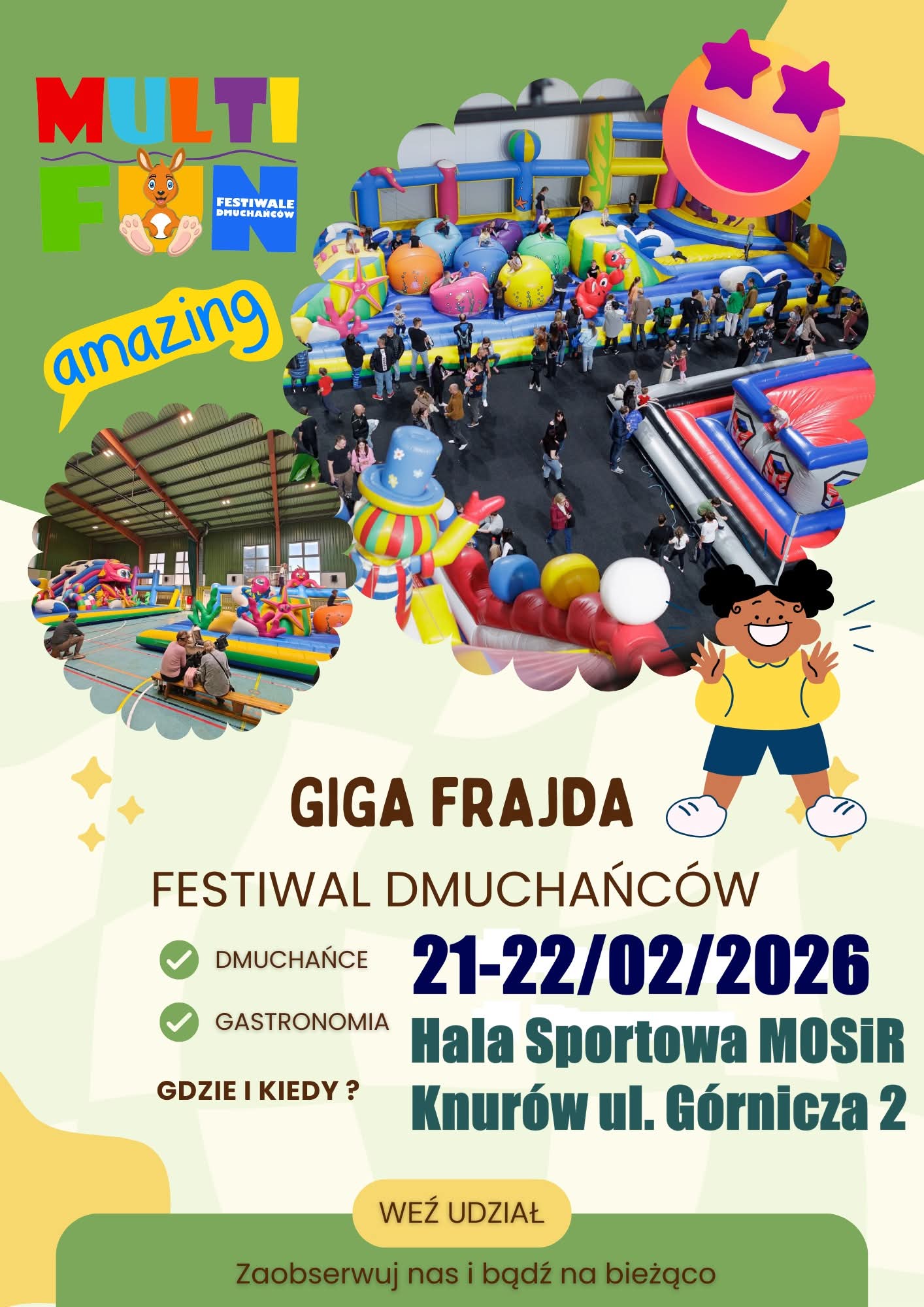 Mieszkańców Knurowa czeka weekend pełen ruchu i dziecięcej radości. Już 21 i 22 lutego hala sportowa przy ul. Górniczej zamieni się w gigantyczne centrum rozrywki pod szyldem „Giga Frajda”. To idealna okazja, by oderwać najmłodszych od ekranów i postawić na aktywną zabawę.