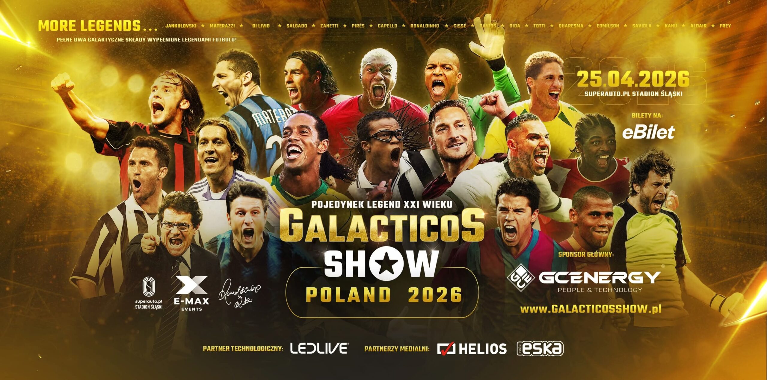 Chorzowski „Kocioł Czarownic” 25 kwietnia 2026 roku stanie się centrum światowego futbolu. Na murawie Stadionu Śląskiego wybiegną legendy, które pisały historię najpotężniejszych klubów Europy. Ronaldinho, Francesco Totti i Fabio Capello to tylko początek listy nazwisk, które rozgrzeją kibiców podczas Galacticos Show.