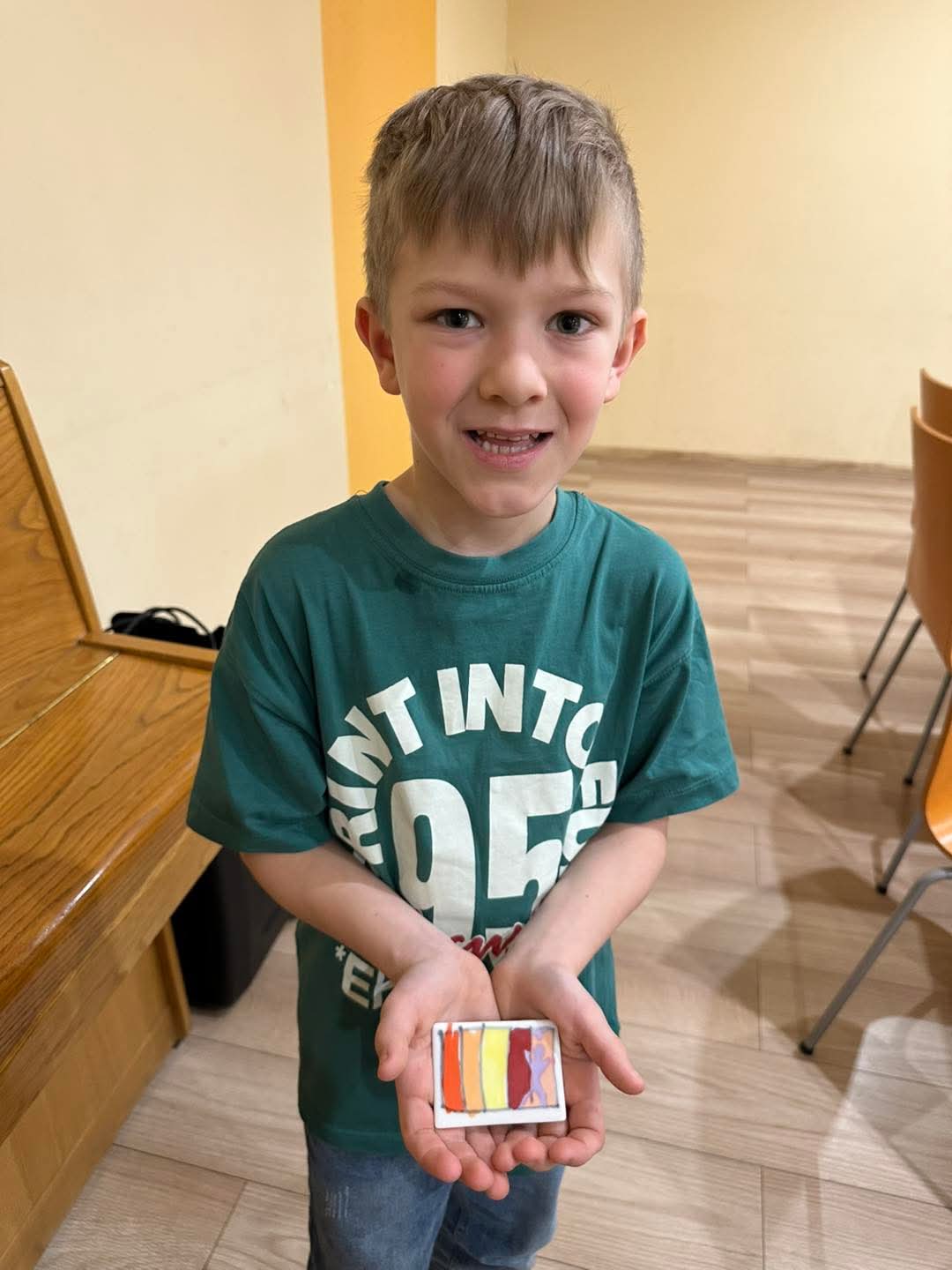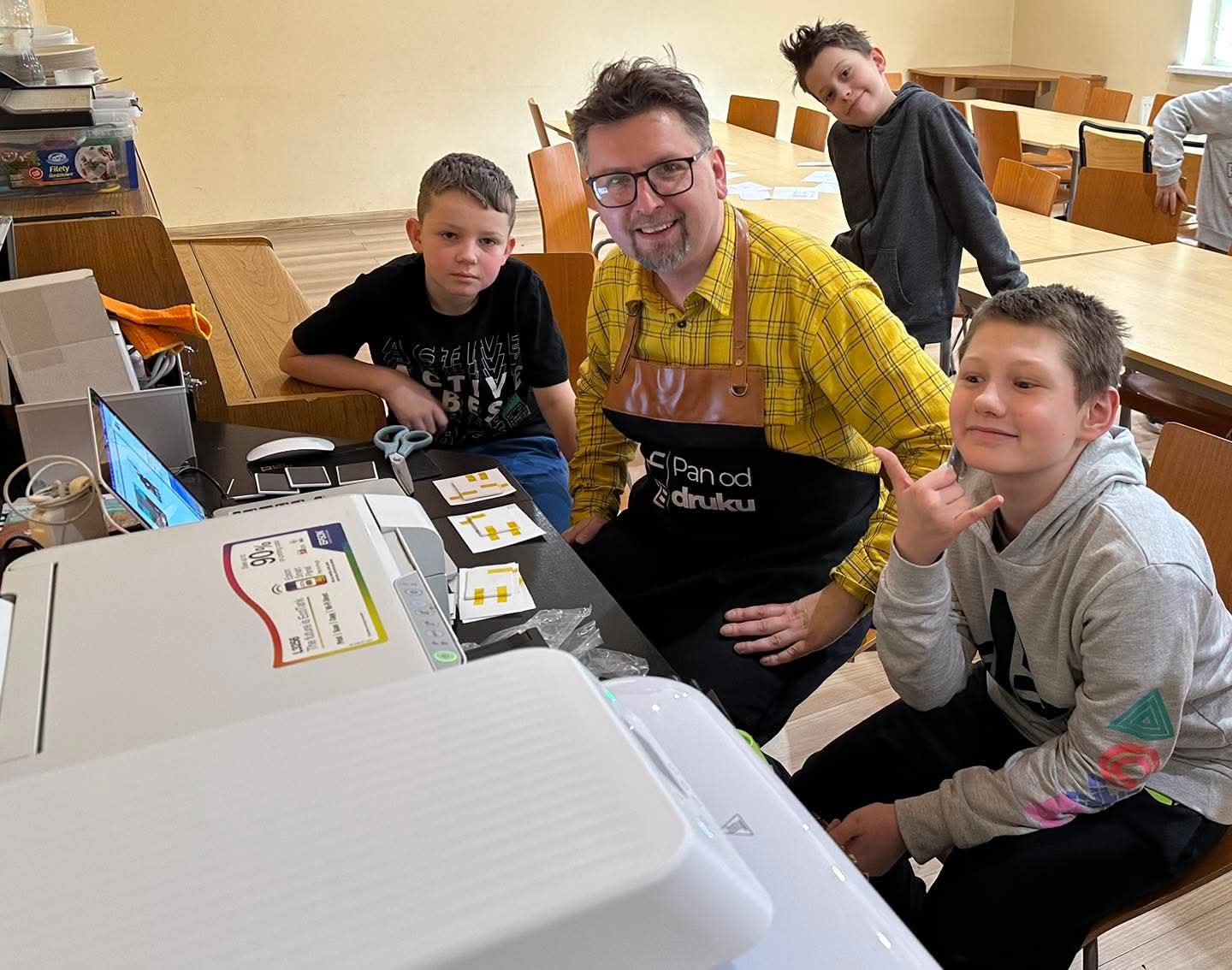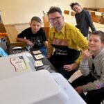 Pod okiem „Pana od druku” młodzi uczestnicy poznali tajniki nanoszenia wzorów na ceramikę. Każde dziecko miało okazję samodzielnie zaprojektować grafikę, która finalnie ozdobiła pamiątkowy magnes.