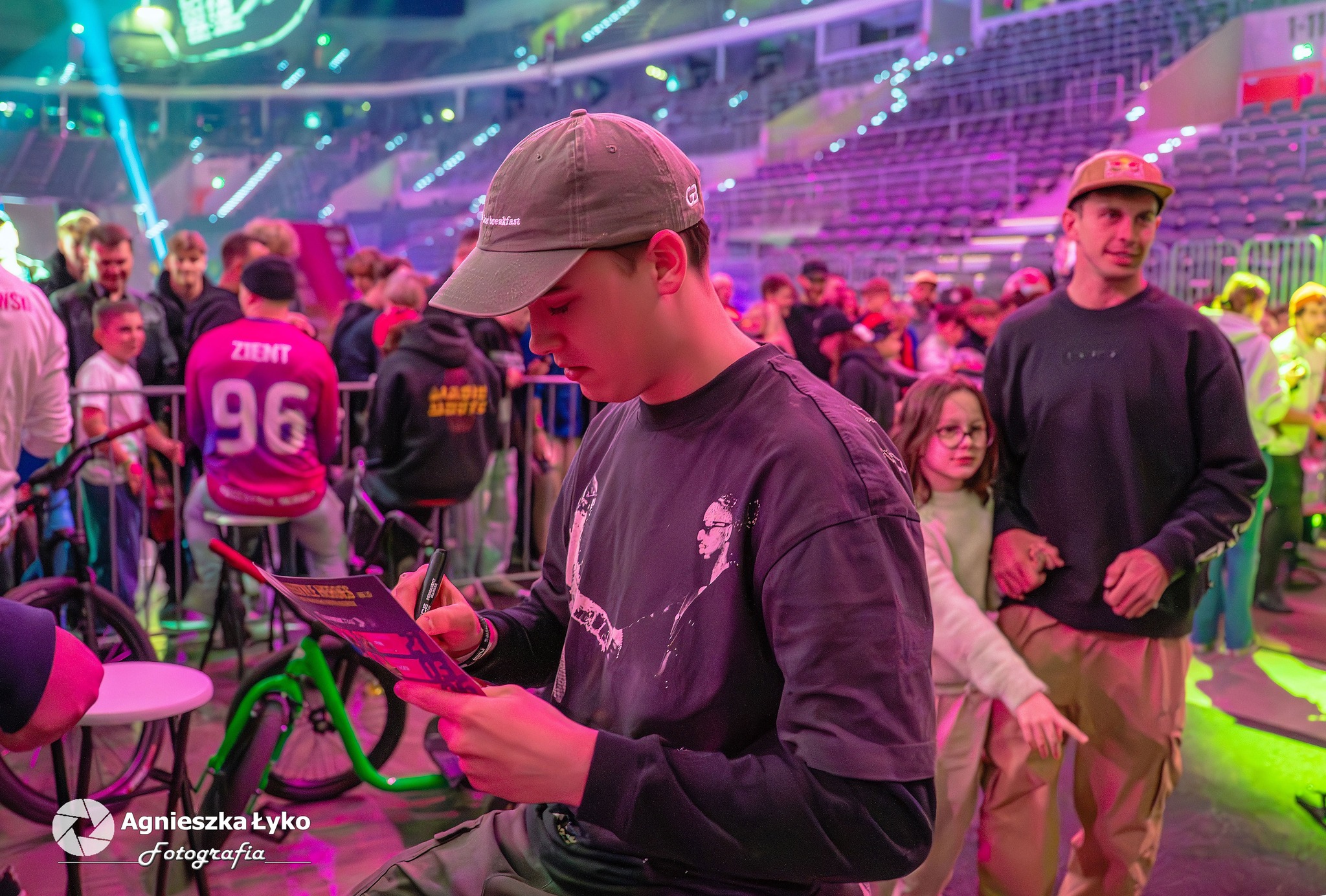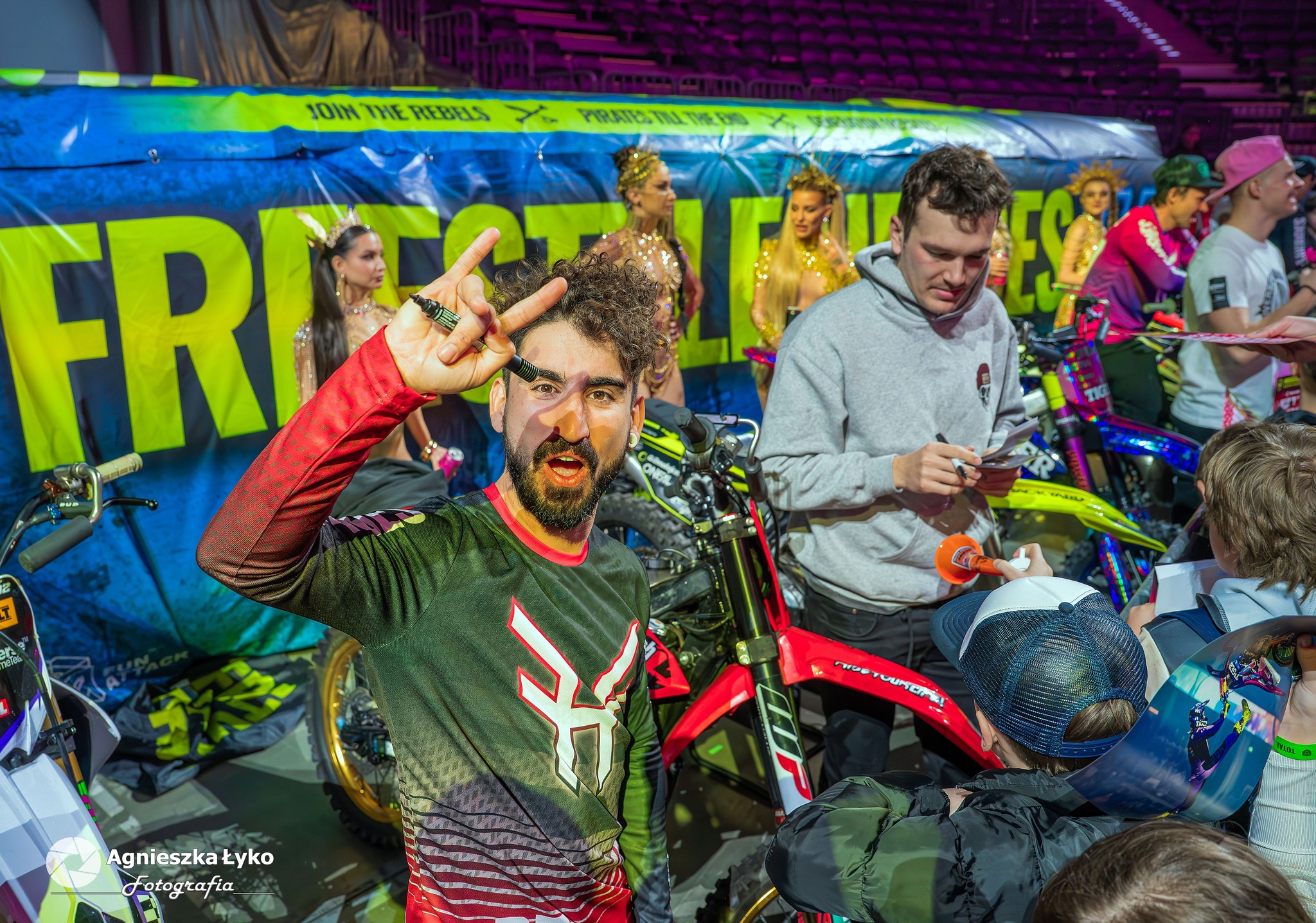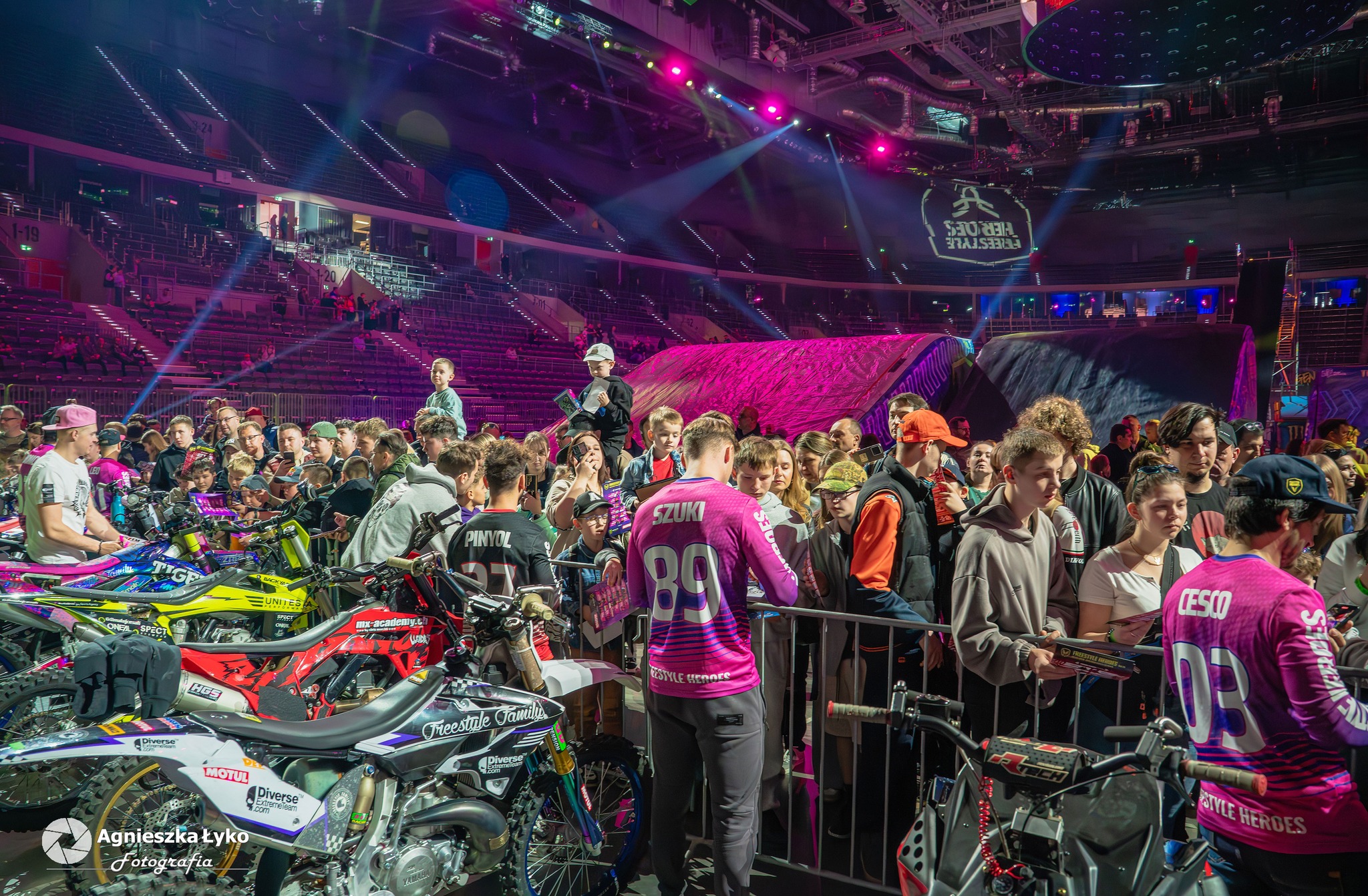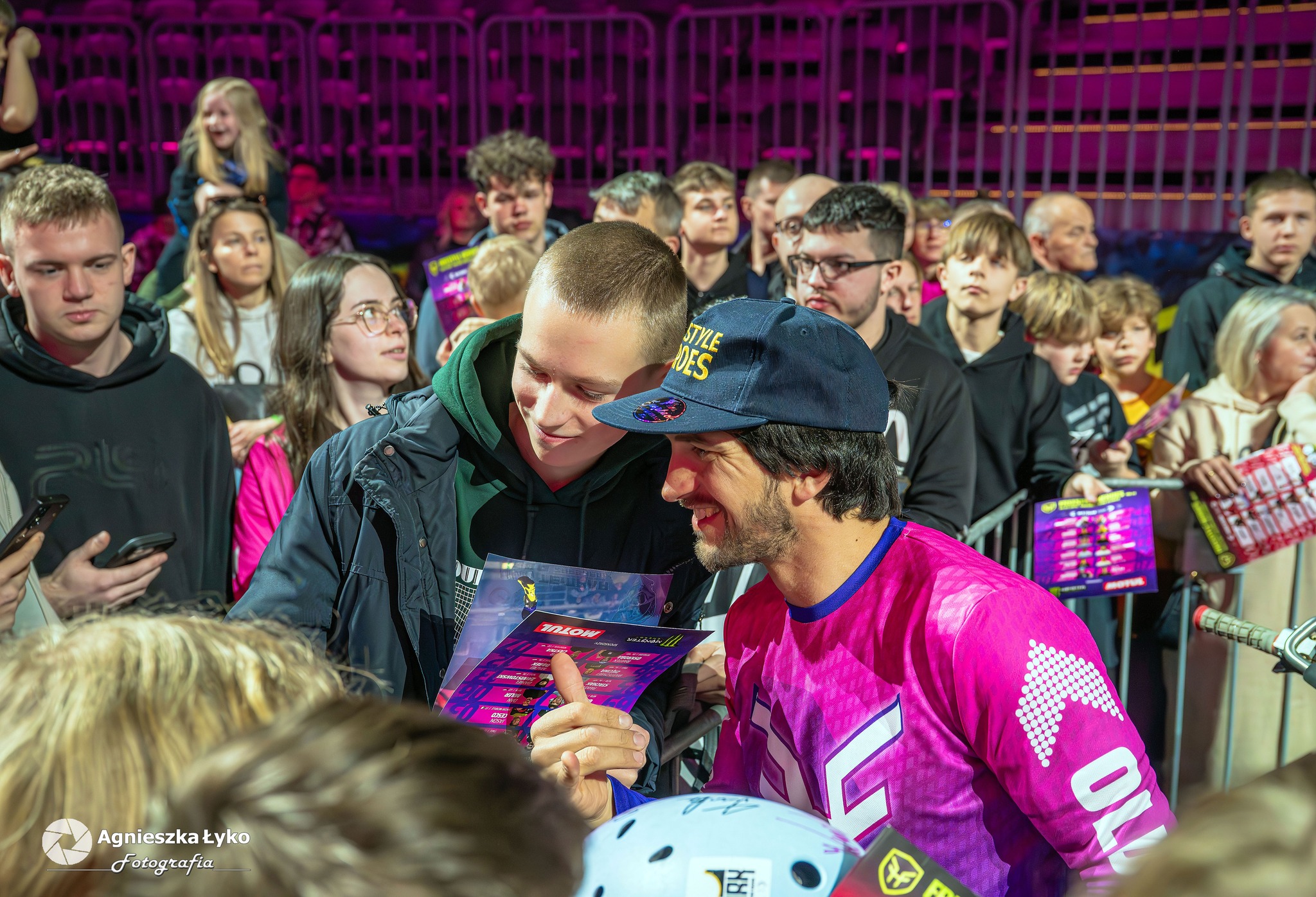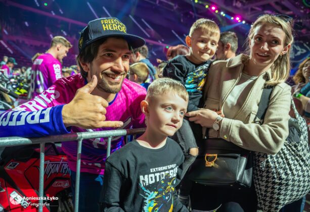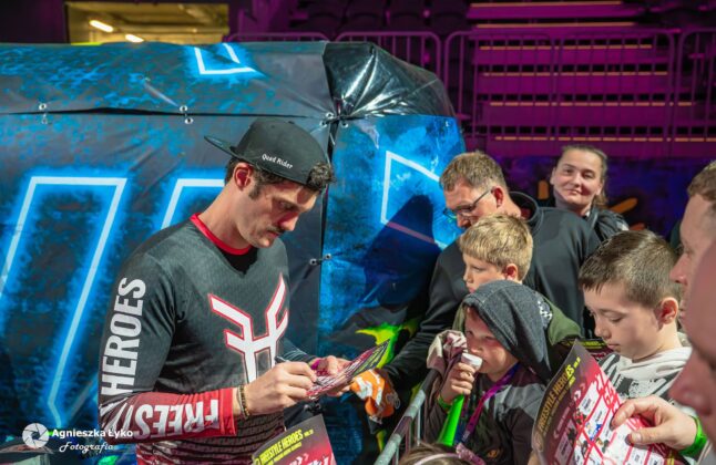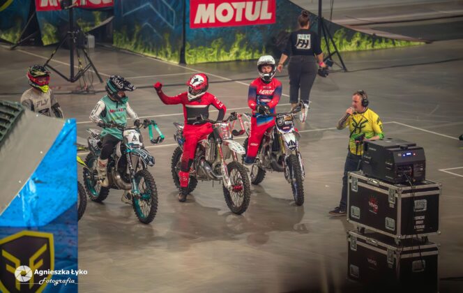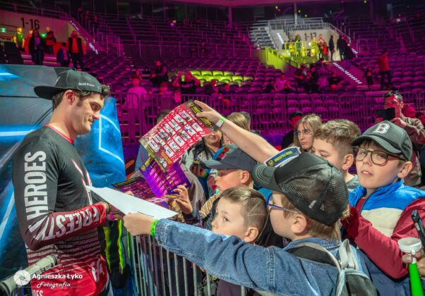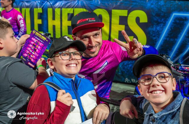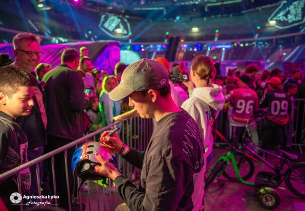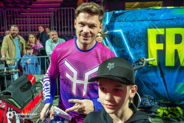 Zanim jednak maszyny ryknęły na głównej płycie, fani mieli niepowtarzalną okazję wejść za kulisy podczas Pit Party. Był to jedyny moment, kiedy bariery między trybunami a płytą całkowicie zniknęły. Kibice mogli z bliska podziwiać potężne silniki motocykli FMX oraz precyzyjną budowę profesjonalnych rowerów MTB i BMX. Największe emocje budziło jednak spotkanie oko w oko z idolami – każdy mógł podejść, przybić piątkę z zawodnikami czy poprosić o autograf na plakacie. Wspólne zdjęcia z takimi gwiazdami jak Marcin Łukaszczyk czy Szymon Godziek były dla wielu młodych pasjonatów spełnieniem marzeń i pamiątką na całe życie.