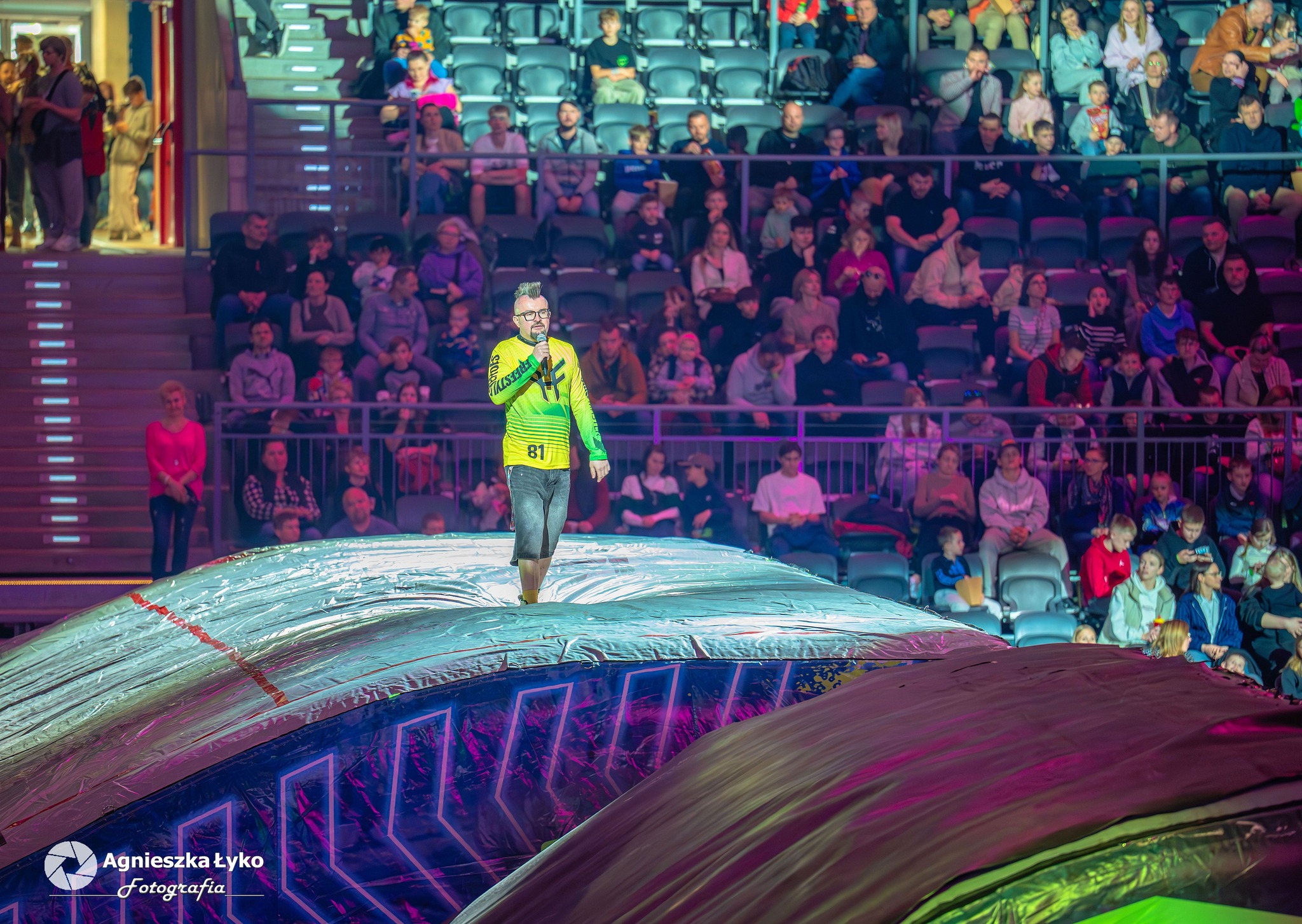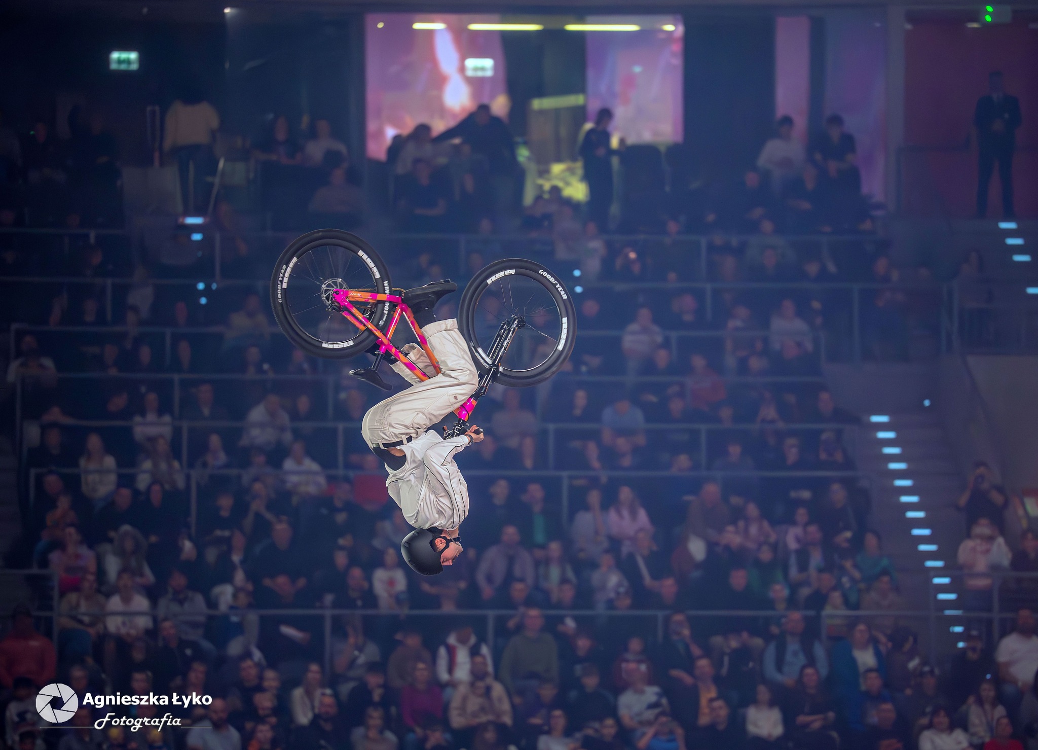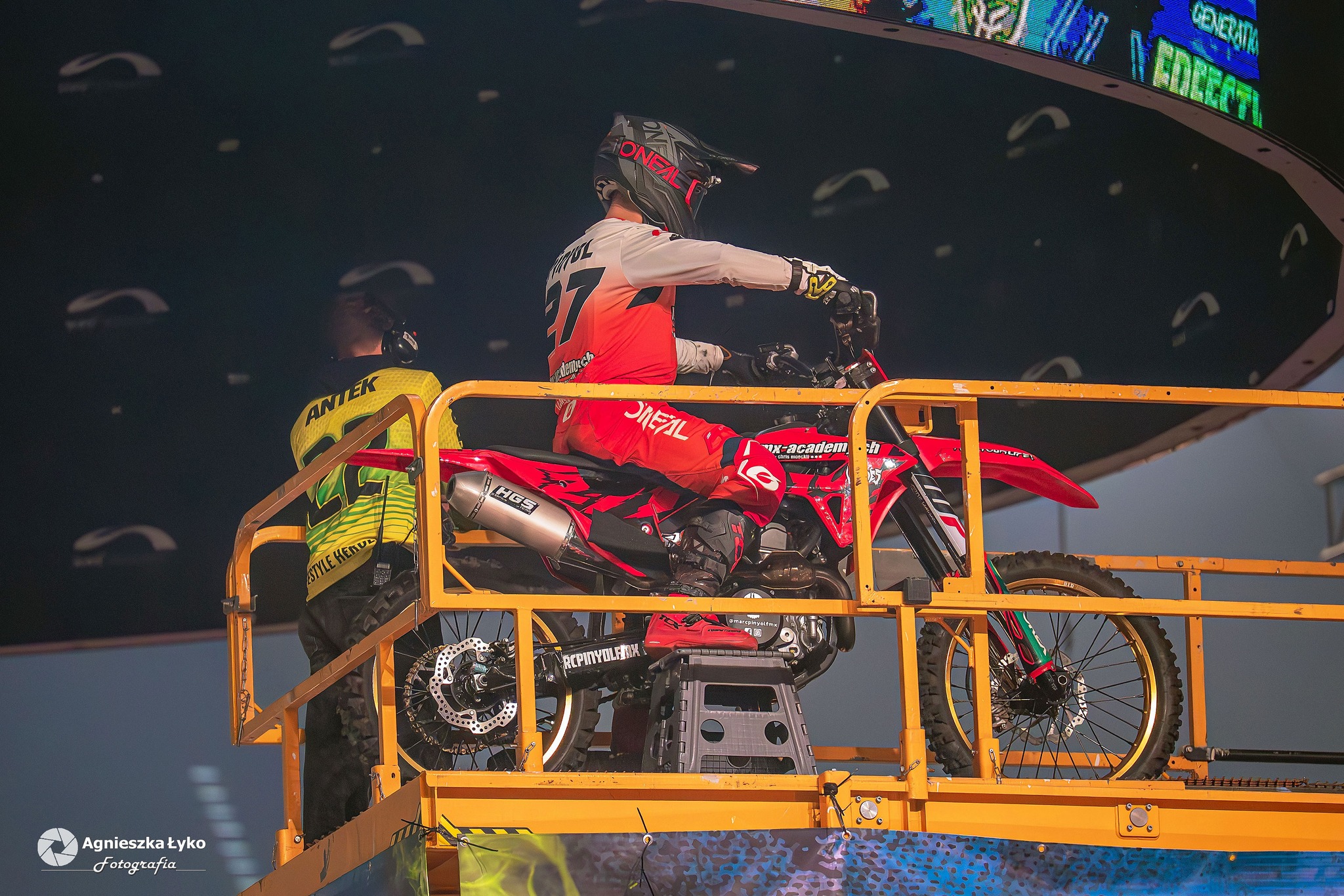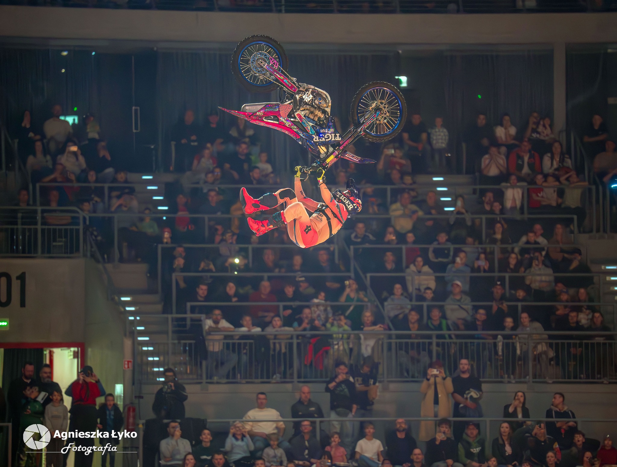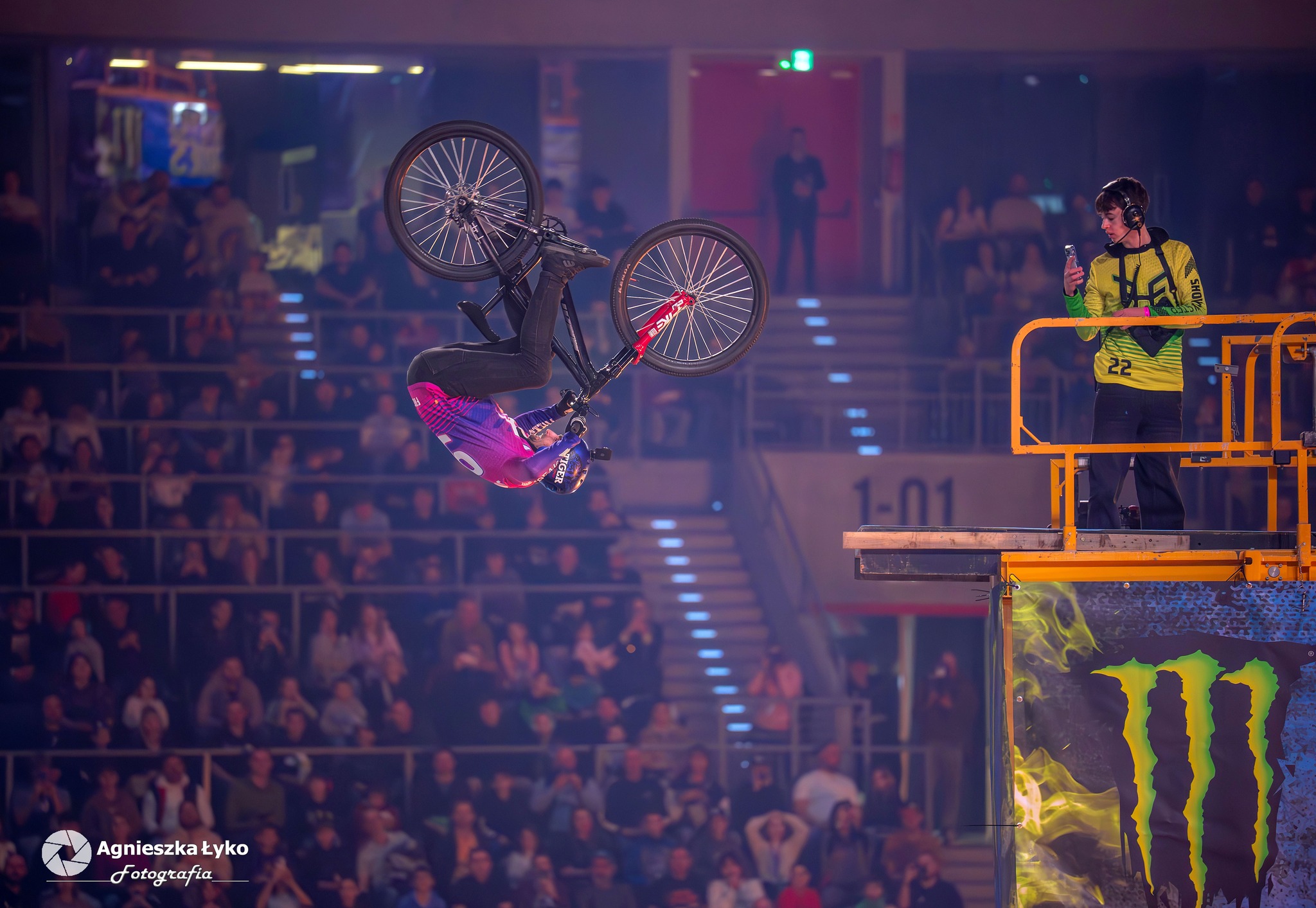 Zanim jednak maszyny ryknęły na głównej płycie, fani mieli niepowtarzalną okazję wejść za kulisy podczas Pit Party. Był to jedyny moment, kiedy bariery między trybunami a płytą całkowicie zniknęły. Kibice mogli z bliska podziwiać potężne silniki motocykli FMX oraz precyzyjną budowę profesjonalnych rowerów MTB i BMX. Największe emocje budziło jednak spotkanie oko w oko z idolami – każdy mógł podejść, przybić piątkę z zawodnikami czy poprosić o autograf na plakacie. Wspólne zdjęcia z takimi gwiazdami jak Marcin Łukaszczyk czy Szymon Godziek były dla wielu młodych pasjonatów spełnieniem marzeń i pamiątką na całe życie.