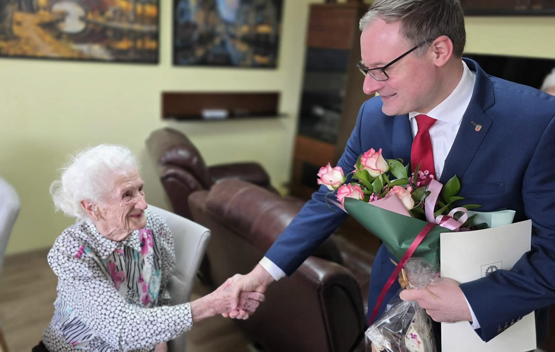Z tej wyjątkowej okazji Jubilatkę odwiedził Prezydent Miasta Zabrze, Kamil Żbikowski. Podczas wizyty przekazał pani Marcie osobiste gratulacje oraz najserdeczniejsze życzenia zdrowia i wielu kolejnych lat przeżytych w spokoju oraz otoczeniu najbliższych.