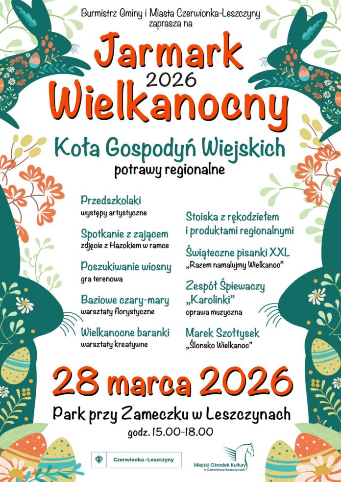 Burmistrz Gminy i Miasta Czerwionka-Leszczyny Wiesław Janiszewski oraz Miejski Ośrodek Kultury serdecznie zapraszają mieszkańców na tradycyjny Jarmark Wielkanocny.