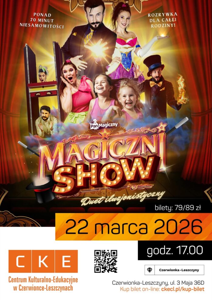 Już 22 marca o godzinie 17:00 scena Centrum Kulturalno-Edukacyjnego zamieni się w portal do innego wymiaru. Wszystko za sprawą „Magiczni SHOW” – najnowszego i najbardziej widowiskowego projektu Pana Magicznego. To nie jest zwykły pokaz sztuczek, lecz dopracowany w każdym detalu spektakl teatralny, który zachwyca już od pierwszych sekund dzięki imponującej scenografii.
