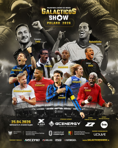 Już 25 kwietnia 2026 roku Chorzów stanie się stolicą światowego futbolu. Legendarny „Kocioł Czarownic” ugości wydarzenie Galacticos Show – Pojedynek Legend XXI Wieku, w którym naprzeciw siebie staną drużyny dowodzone przez ikony dyscypliny: Francesco Tottiego oraz Ronaldinho.