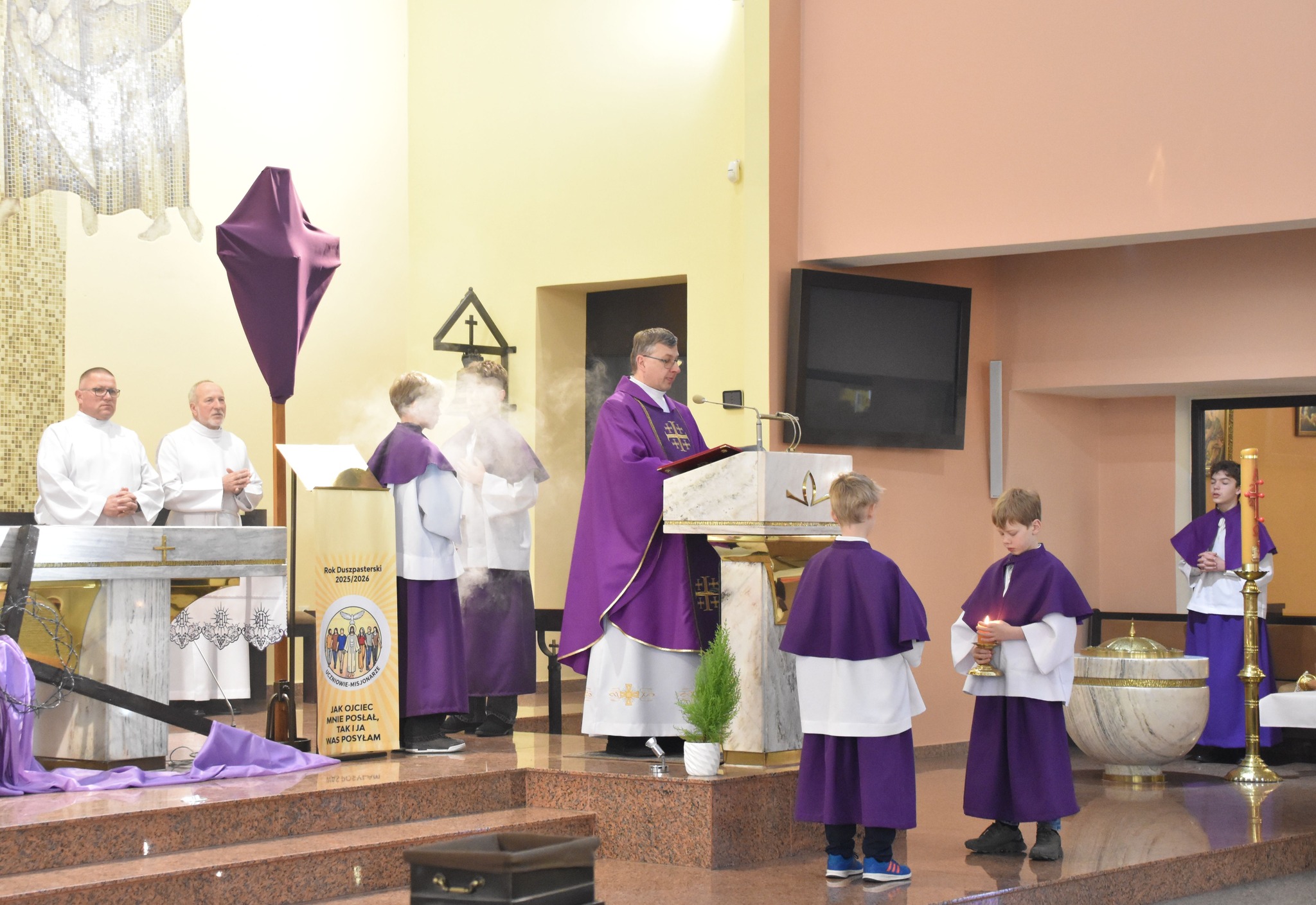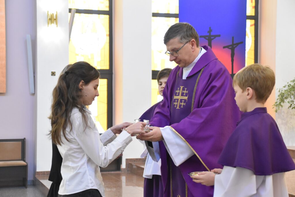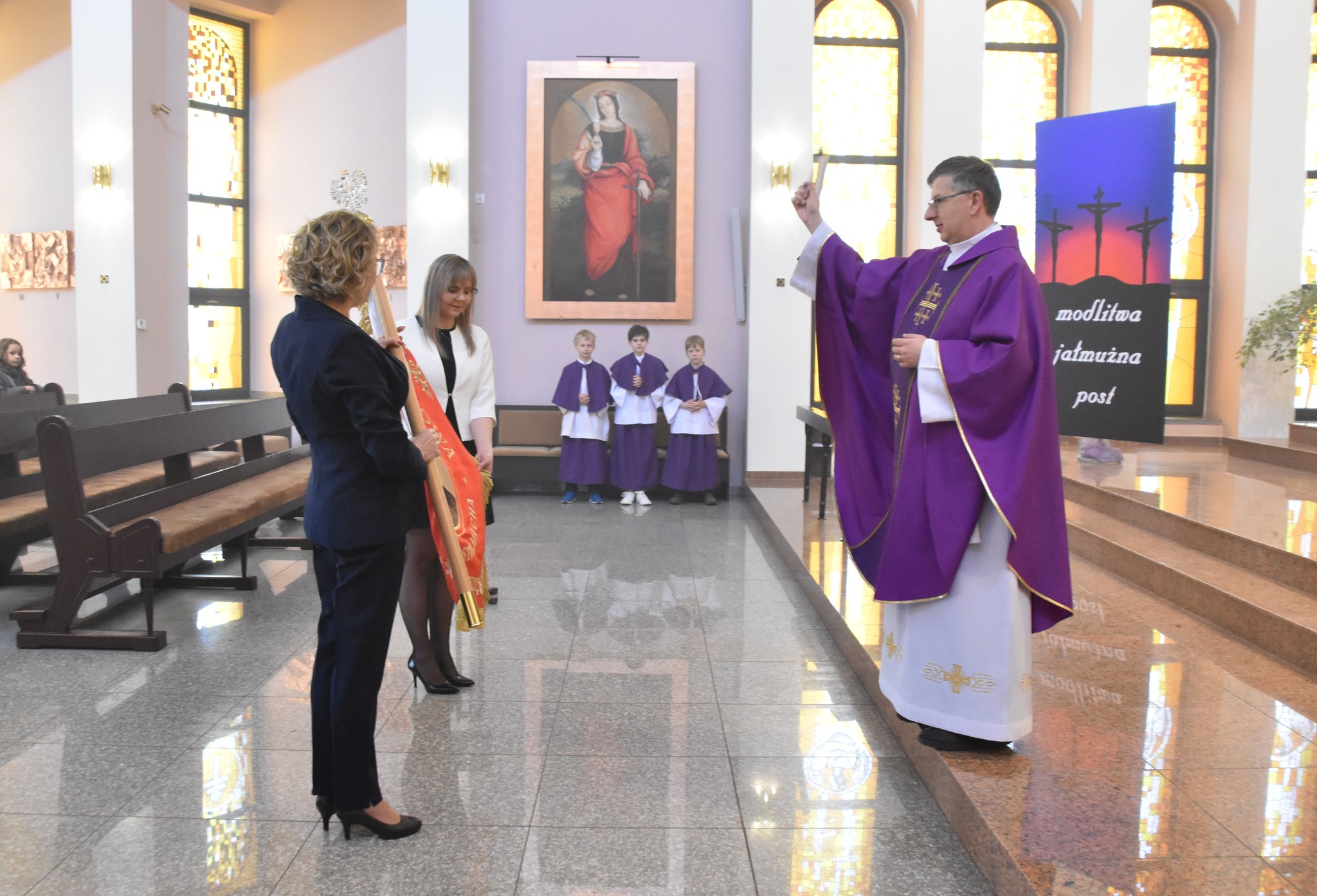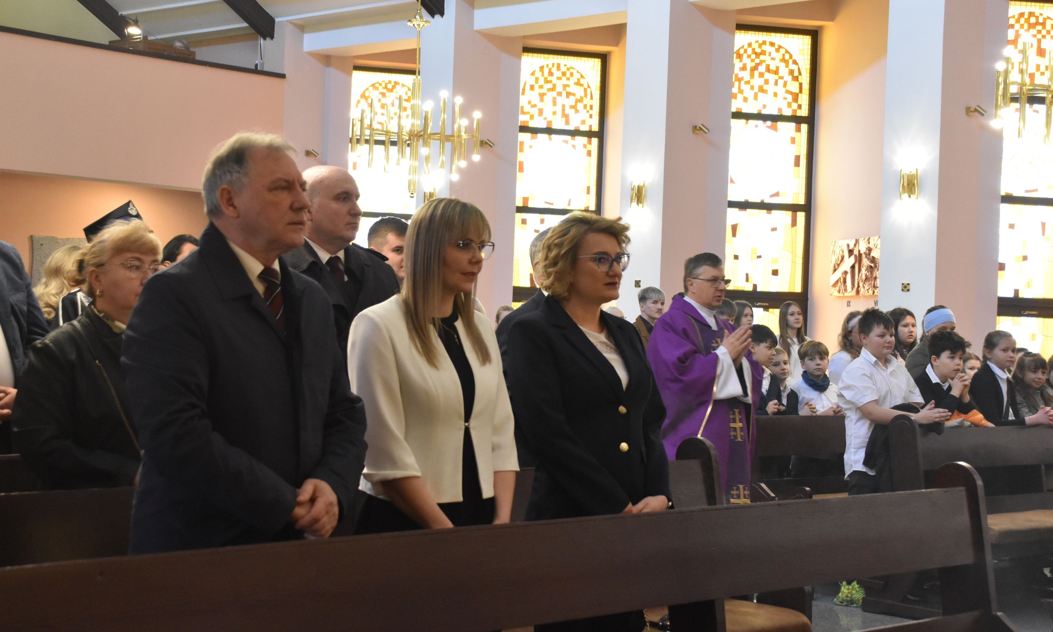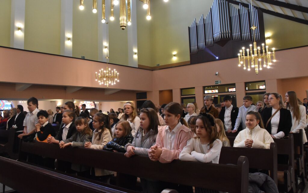 ⛪ Obchody rozpoczęły się Mszą Świętą w intencji społeczności szkolnej, podczas której poświęcono sztandar.