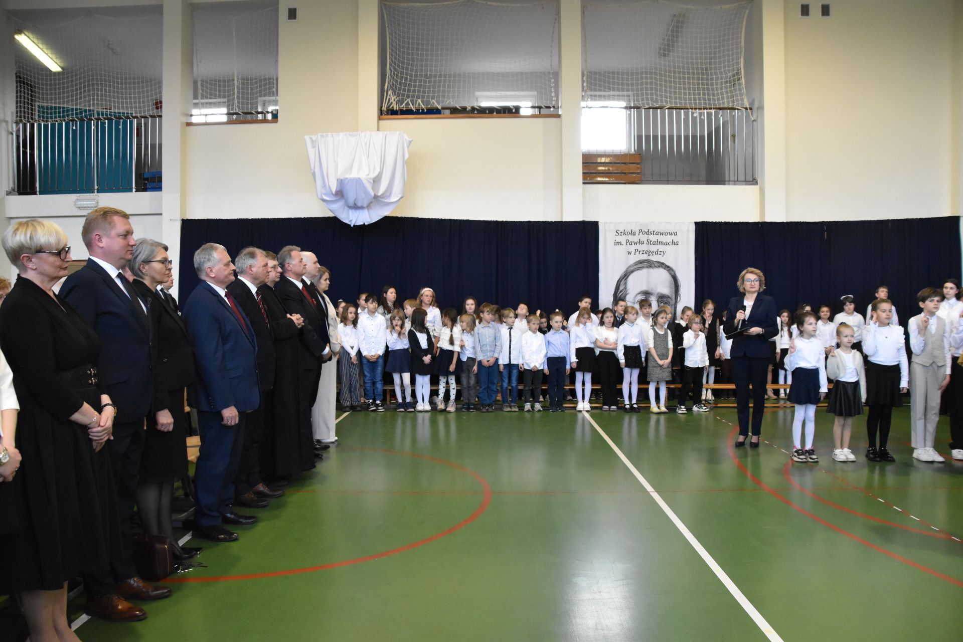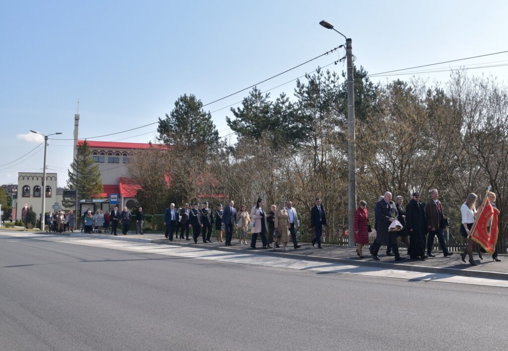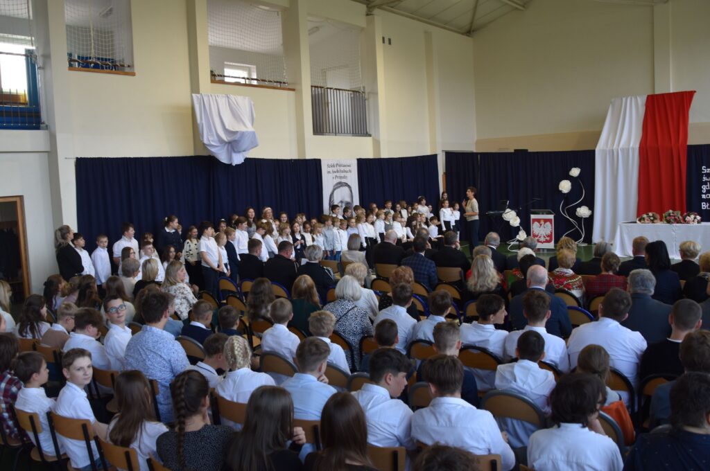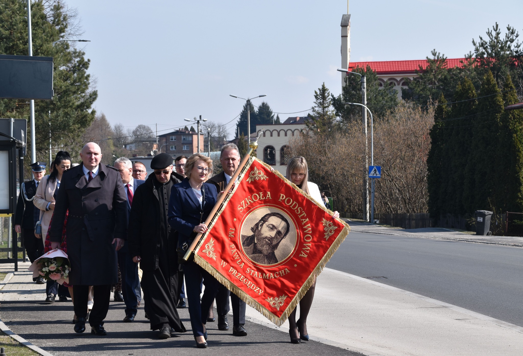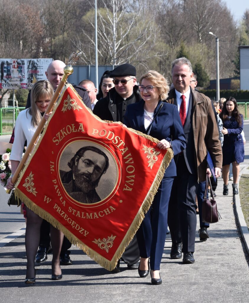 🚶♀️🚶 Następnie uczestnicy wydarzenia w uroczystym przemarszu udali się do Szkoła Podstawowa im. Pawła Stalmacha w Przegędzy, gdzie odbyły się oficjalne obchody związane z jego przekazaniem.