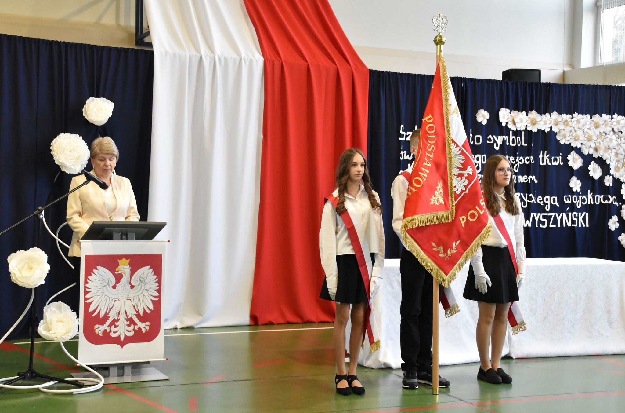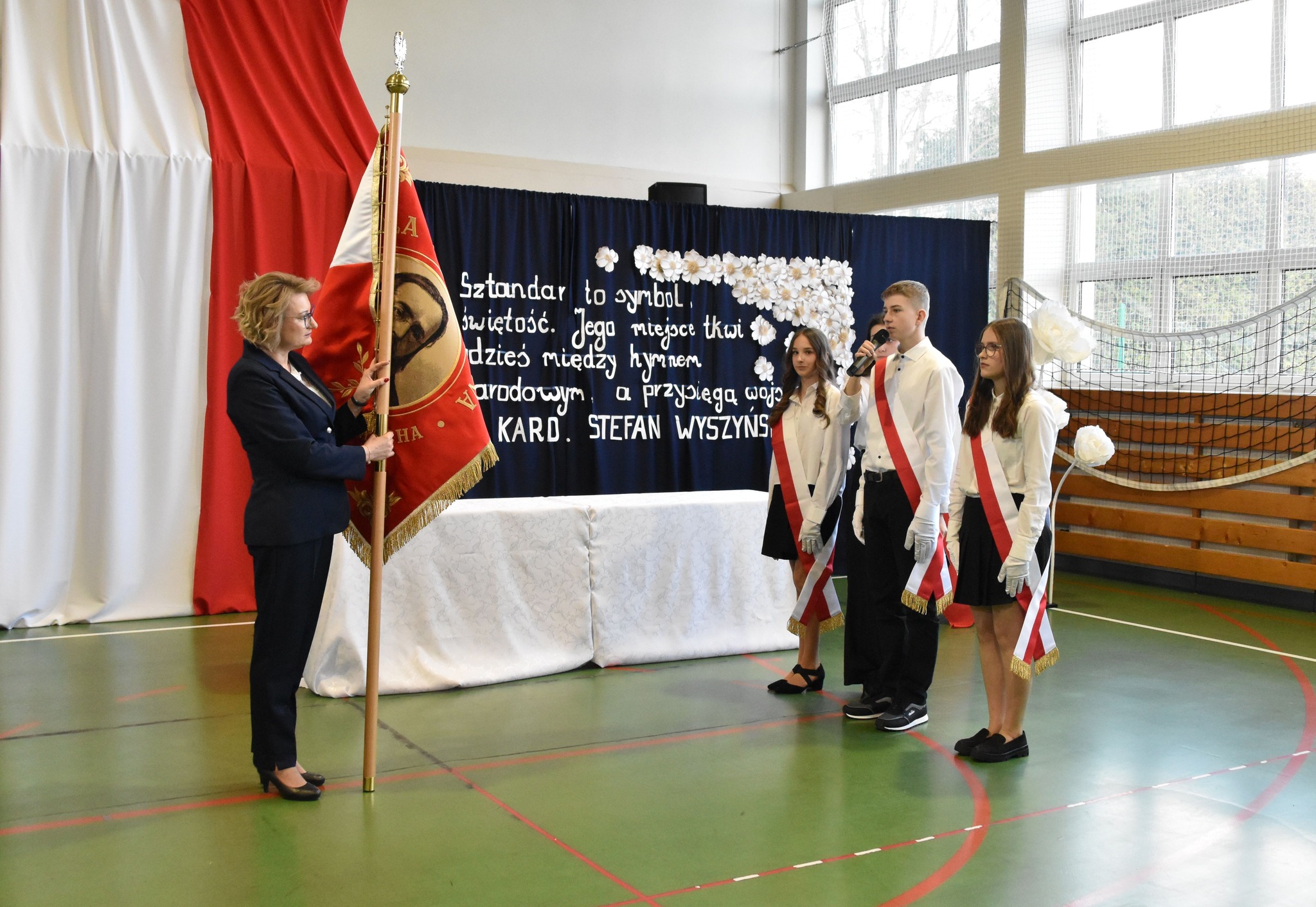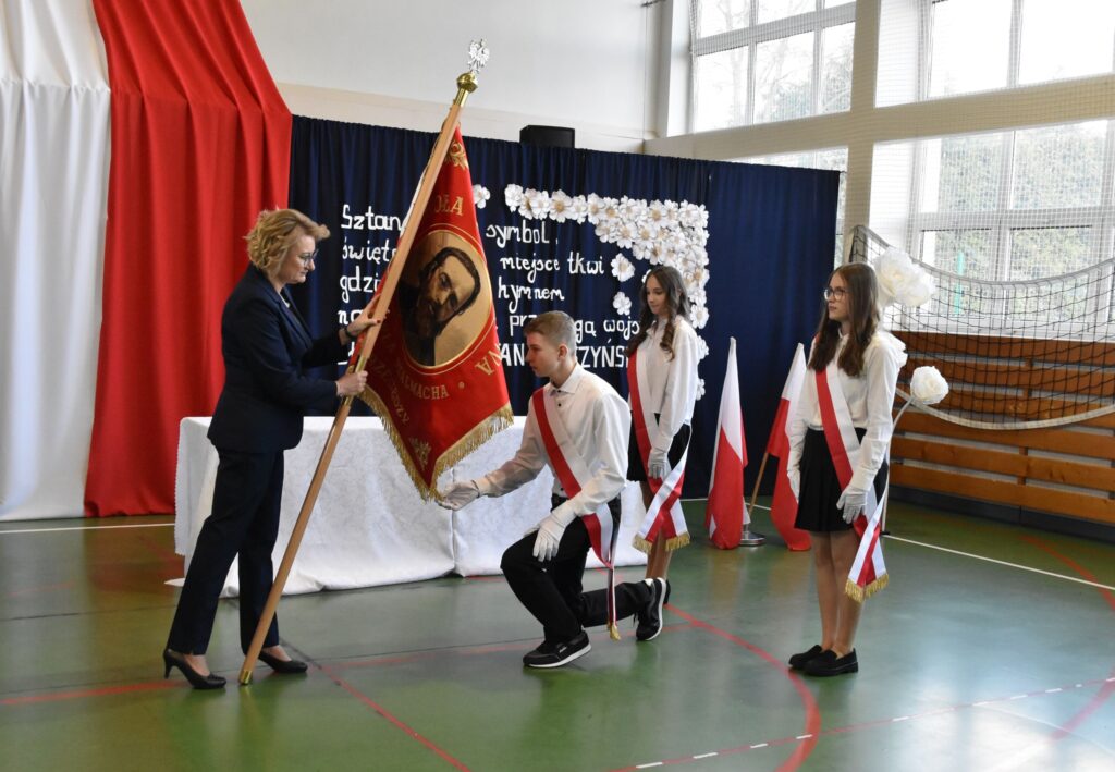 💬 „Sztandar szkoły jest symbolem najwyższych wartości, takich jak honor, tradycja, odpowiedzialność oraz szacunek dla wiedzy i drugiego człowieka. Jest znakiem naszej tożsamości. Łączy pokolenia uczniów, nauczycieli i absolwentów. Przypomina o historii szkoły, jej dorobku oraz wartościach, które wspólnie tworzymy i pielęgnujemy każdego dnia. Dla uczniów sztandar jest szczególnym zobowiązaniem. Jest przypomnieniem, że nauka w tej szkole to nie tylko zdobywanie wiedzy, ale także kształtowanie charakteru, postaw obywatelskich i odpowiedzialności za siebie oraz innych” – podkreśliła dyrektor szkoły, Michalina Hanak.