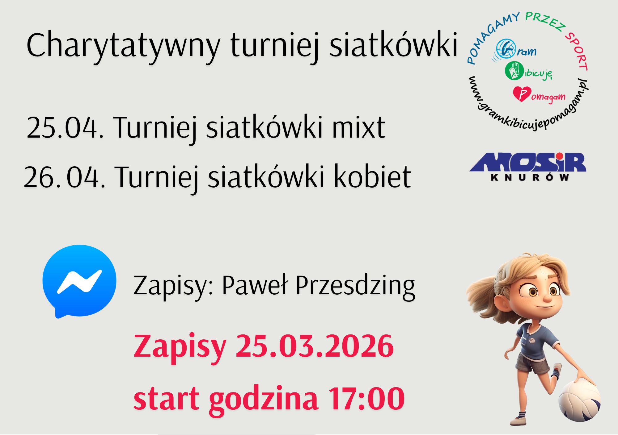 Pasja do sportu i chęć niesienia pomocy znów połączą siły. Fundacja „Gram, Kibicuję, Pomagam” zaprasza do udziału w wyjątkowym turnieju siatkarskim, który odbędzie się w dniach 25–26 kwietnia. Masz drużynę? Nie zwlekaj – zapisy ruszają już dziś!