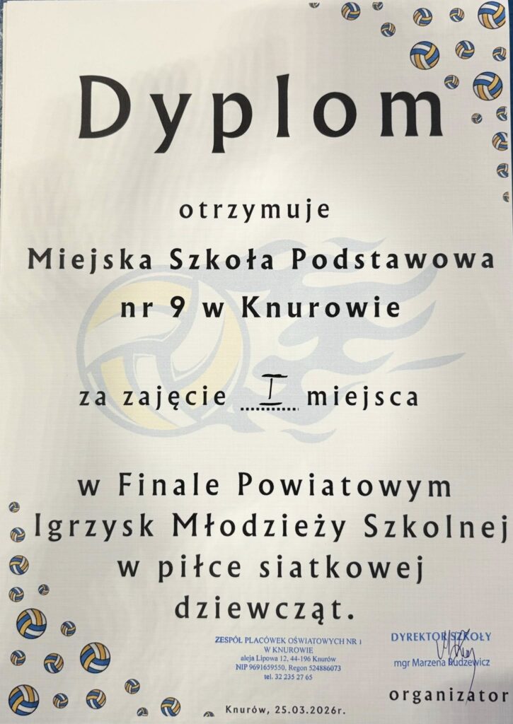 Miejska Szkoła Podstawowa nr 9 im. Marii Konopnickiej w Knurowie została triumfatorem Igrzysk Młodzieży Szkolnej w Piłce Siatkowej Dziewcząt na szczeblu powiatowym. Po emocjonującej rywalizacji knurowskie zawodniczki stanęły na najwyższym stopniu podium, uzyskując awans do finału rejonowego.