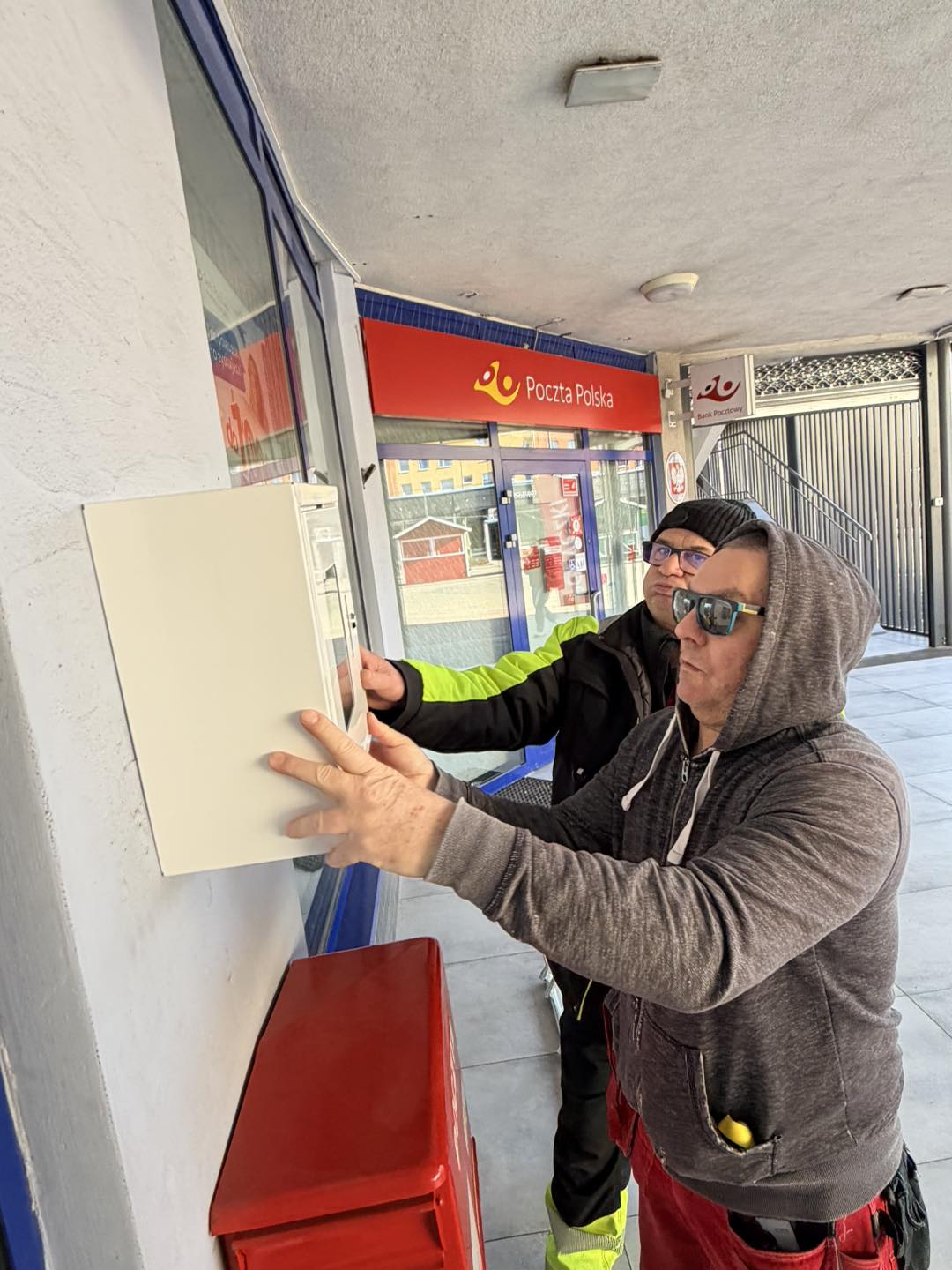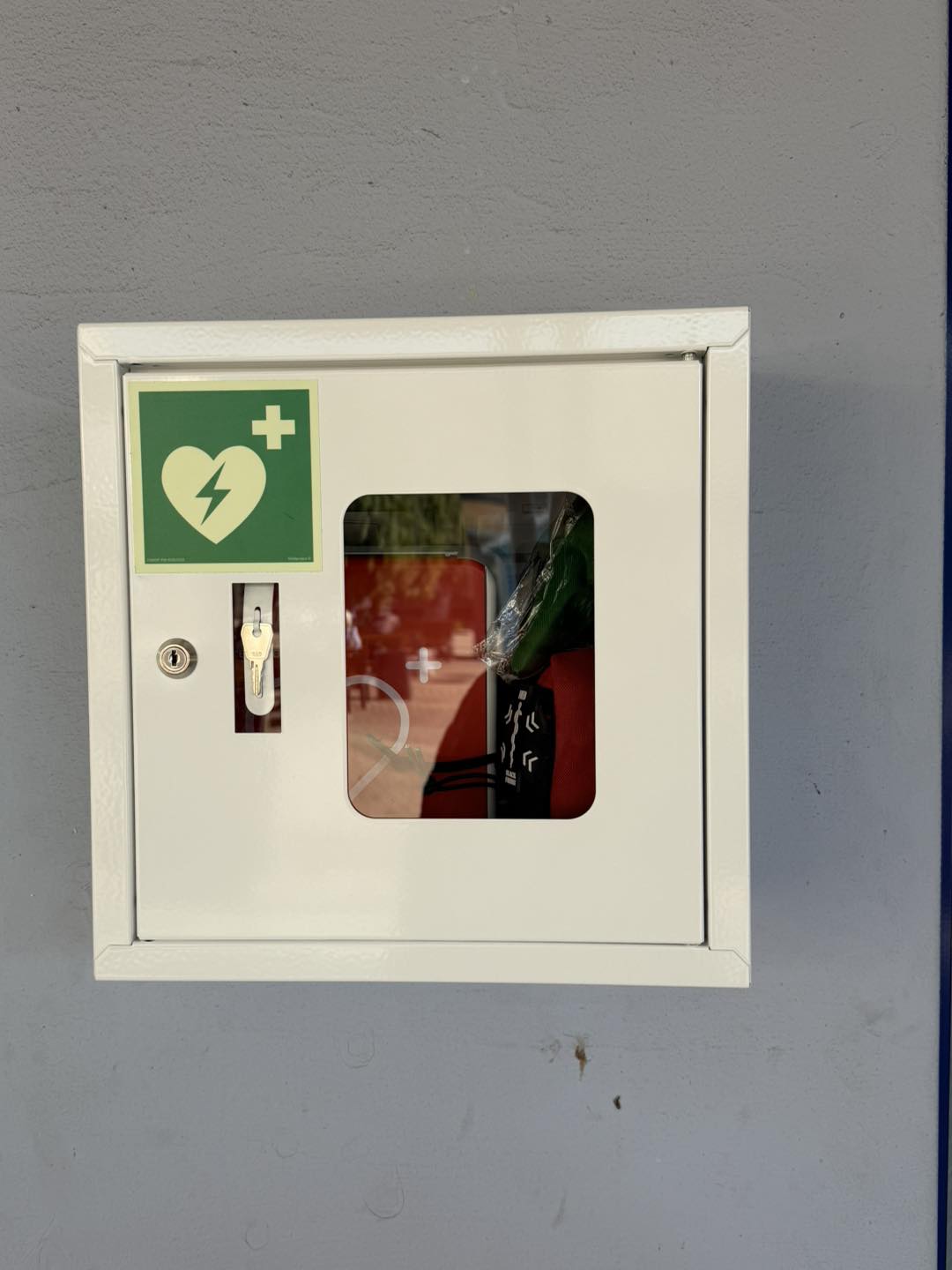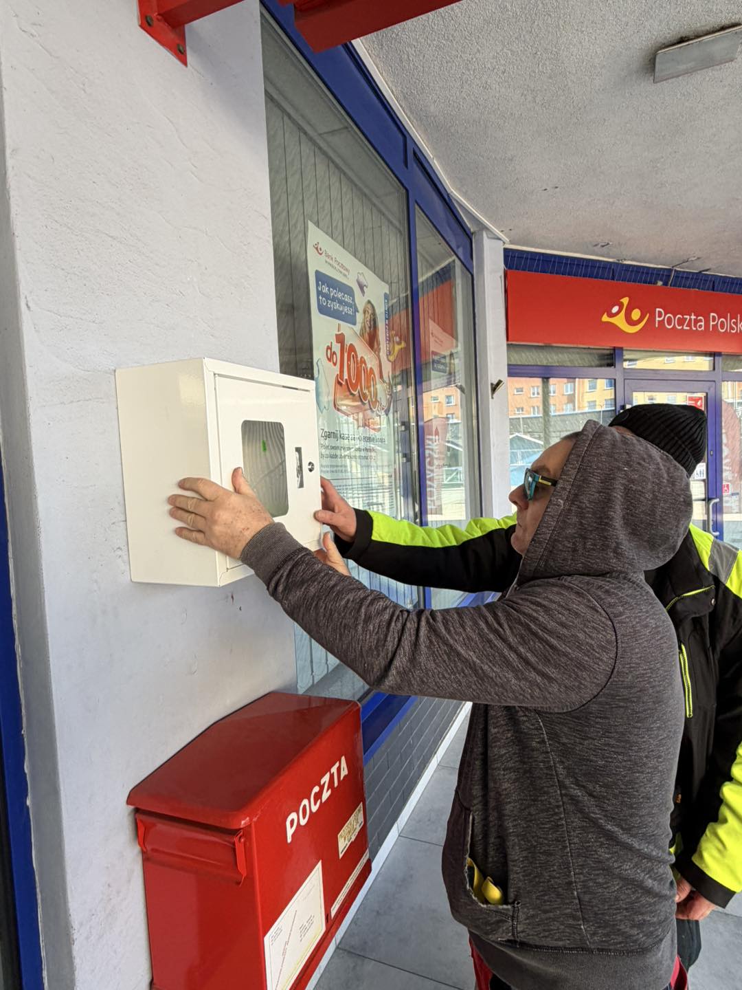 Na terenie Kompleksu MERKURY zamontowano defibrylator AED. Urządzenie znajduje się w bezpośrednim sąsiedztwie wejścia do placówki pocztowej i jest dostępne dla wszystkich osób przebywających w okolicy.
