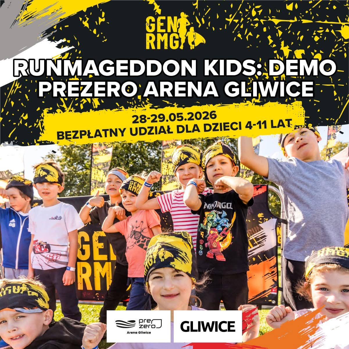 W ostatni weekend maja, dokładnie 28 i 29 maja, gliwicka arena zamieni się w centrum aktywnej zabawy dla najmłodszych. To właśnie wtedy odbędzie się Runmageddon Kids: DEMO – specjalna edycja toru przeszkód przygotowana z myślą o dzieciach w wieku od 4 do 11 lat. Wydarzenie jest otwarte zarówno dla uczestników indywidualnych, jak i grup zorganizowanych oraz wszystkich małych poszukiwaczy przygód, którzy chcą sprawdzić swoją sprawność.